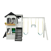 2MamaBees Reign Two Story Playhouse will create hours of sensory play while also helping your little one explore the world of imagination. The beautiful white and black farmhouse design will create a stunning addition to any backyard. The Reign Two Story Playhouse includes a...