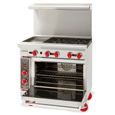 American-Range 36-Inch Restaurant Range with Convection Oven AR-6-C - 45570 American Range's AR24G2B two-burner gas range with a griddle has a stainless steel front, sides, high shelf and riser to sustain durability. This range has a heavy-gauge welded frame construction and a six-inch stainless...