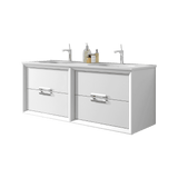 Lucena Bath 48" Décor Tirador Double Floating Vanity in White, Black, Gray or White and Silver Features