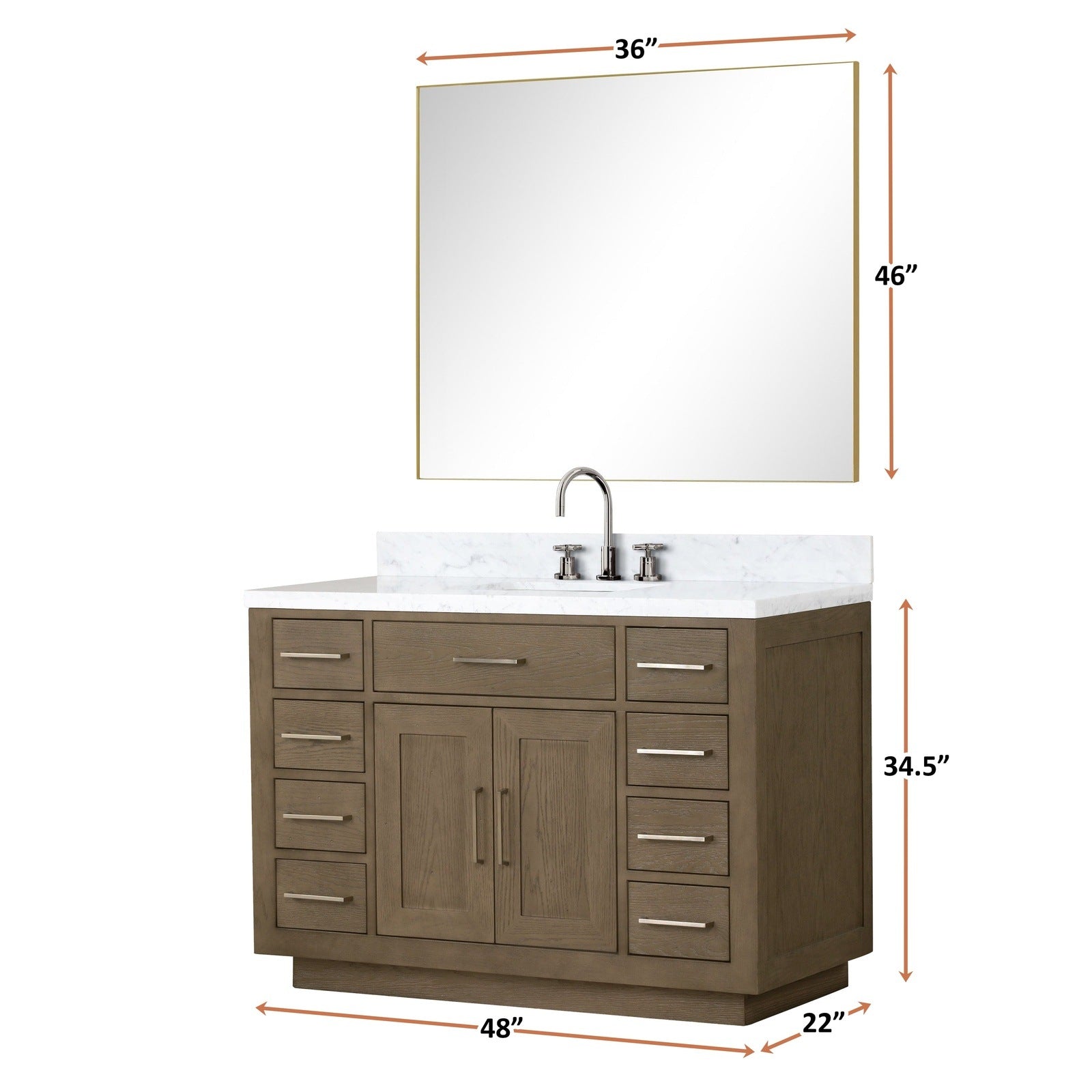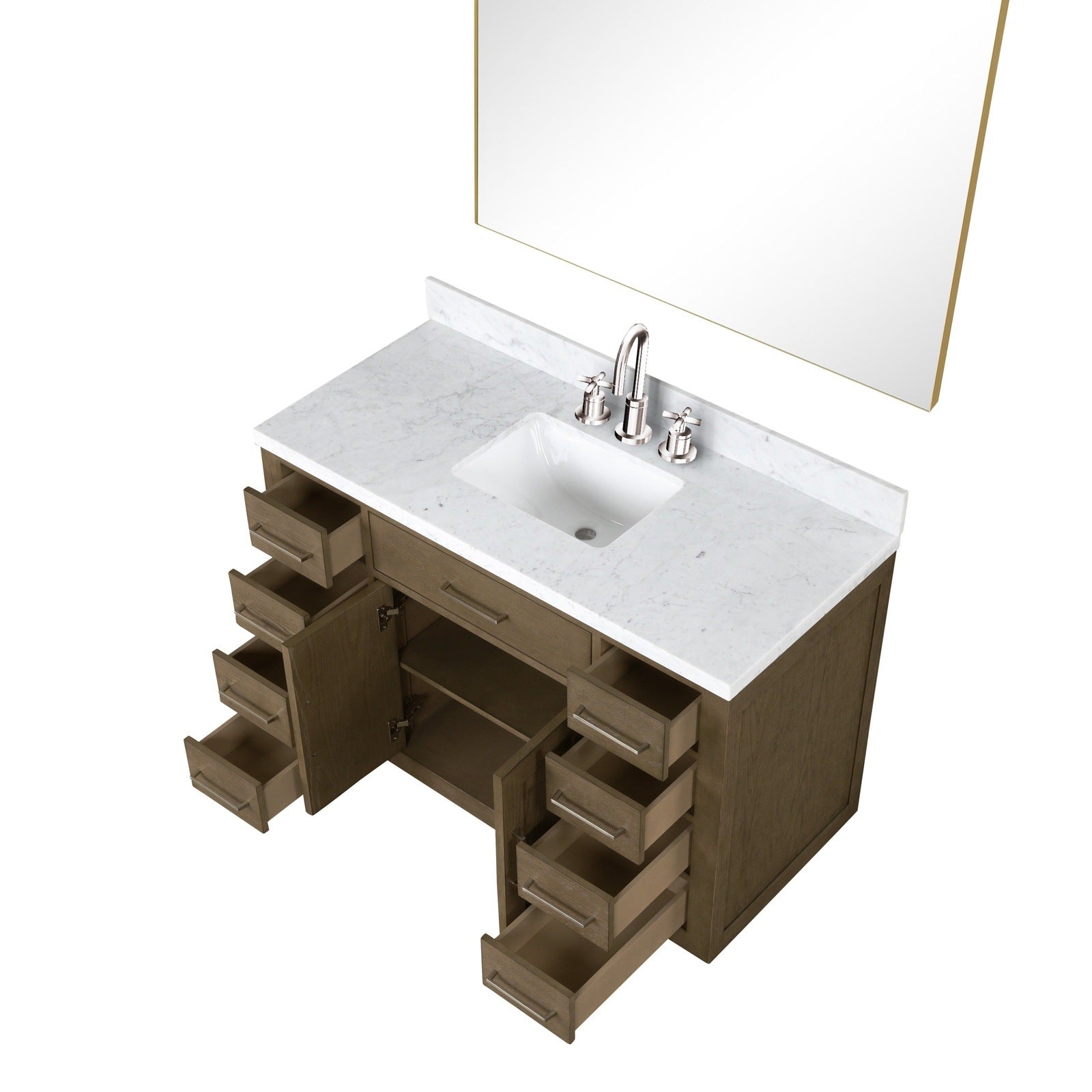 Crafted with the highest quality materials, the Abbey collection is a perfect combination of contemporary design and practical functionality. The stunning Carrara marble top adds a touch of luxury and sophistication to your bathroom, while the soft-close drawers and doors provide ample storage space for all your bathroom essentials.