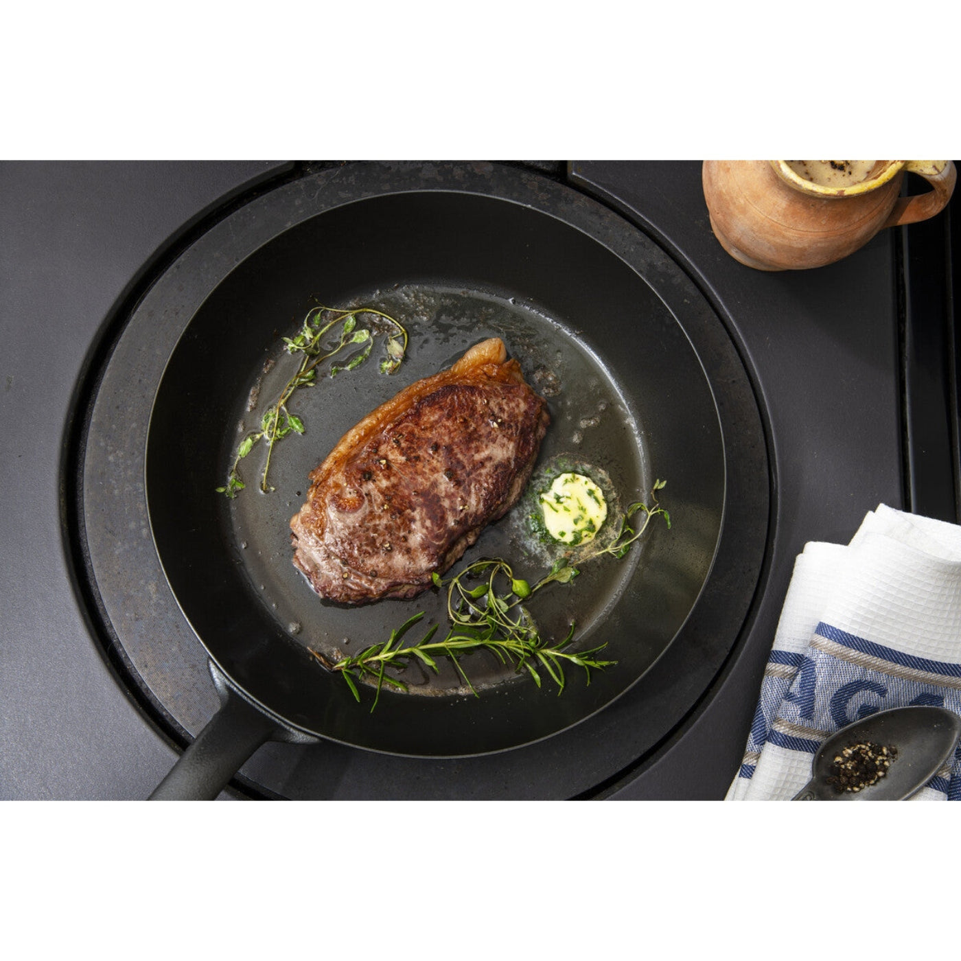 The 5mm thick base provides excellent energy efficiency and heat distribution, whilst the removable handles make the pans extremely versatile for use on the hob as well as in the oven.