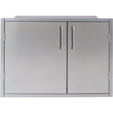 The Alfresco Enclosed Cabinet provides maximum protection for your dry goods, cookware, cookbooks, and more, with its water-tight design and unique integrated rain gutter to keep water out. This unbranded pantry has no logos, making it ideal for matching with any brand of grill. Constructed with commercial-grade stainless steel, this 30-inch low-profile pantry offers outstanding durability. It features two internal drawers on the left and an adjustable wire shelf on the right, providing versatile storage options. The compact 21-inch tall profile allows for convenient placement below your grill, ensuring easy access to your essentials while you're grilling.