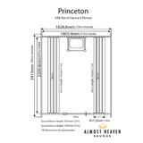 Q: What are the key features of the Almost Heaven Princeton 6 Person Standard Barrel Sauna?