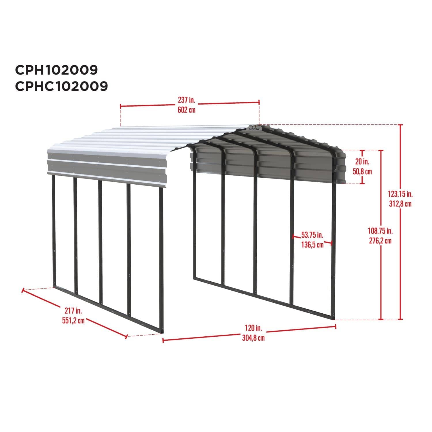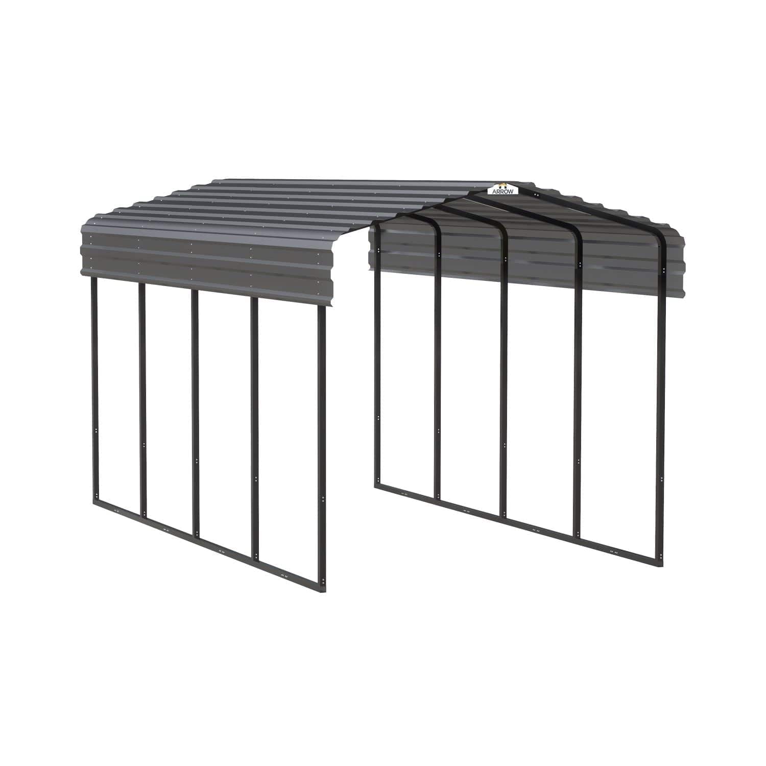 Use the Carport to shade your vehicle, truck, ATV, outdoor equipment, rest areas or picnic areas. Great for storing boats, picnic and outdoor furniture and summer toys in the off-season. Each Arrow Carport is wind and snow load rated, designed to take on tough weather conditions and stand up to accumulated snowfall. Its galvanized steel roof is made to protect against corrosion, rust, and the elements and features an attractive roof with a Charcoal finish. The Carport is assembled on a tough all-steel, 2 in. tube frame, made to reinforce stability and strength in the structure, and has a powder-coated finish that resists corrosion and rust. Easy to install, the Carport comes with slip-fit connections with pilot holes and self-drilling screws making this unit easy to build straight out of the box.
