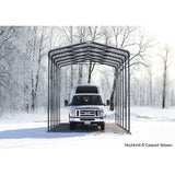 The Arrow Steel RV Carport with Metal Cover is equipped to protect a variety of vehicles including your RV, Motorhome, Camper, Truck, Tractor or 5th Wheel camper. Each Arrow RV Carport is made strong with a wind and snow load rating, meaning they are designed to take on tough weather and snow storms. The 14 foot high Metal cover is made from galvanized steel to offer your vehicle years of protection from the weather and harmful UV rays. The steel frame is durable and is made with a powder coating finish to protect the carport for extended corrosion protection. Easy to install, the Carport comes with slip-fit connections with pilot holes and self-taping screws making this unit easy to build straight out of the box.