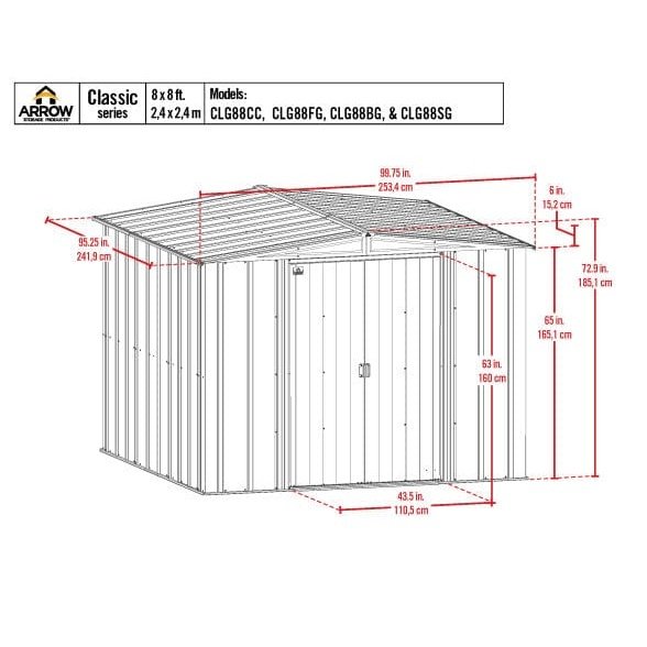 The Arrow Classic series steel storage shed is engineered to protect your landscaping equipment, tools, and gardening supplies, safe from the elements. The shed is made of galvanized steel that’s treated to prevent rust and corrosion. It has a low gable roof that’s designed to prevent water from pooling. It has sliding doors that can be secured with a padlock. The Arrow Classic is a good-looking unit, too. The shed’s timeless vertical wall panels are finished with smooth, hard-wearing Valspar polyester paint finish protects against the elements and seals the steel against rust and corrosion.
