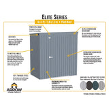 Made from PermaPlate, a US Galvalume® steel with an aluminum and zinc plating which is highly anti-corrosive, this steel shed is built to last! The Elite series sheds also feature a tall 72 in. wall height and high gable roof for added headroom, plus extra walk around space. The rigid reinforced swing open doors with brushed nickel key lock handle allows for easy access to the interior, while allowing storage against the front wall. In addition, gable vents provide increased air flow to the shed's interior. All hardware is included for assembly.