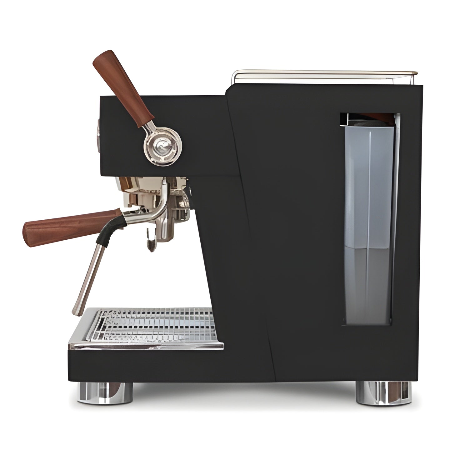 The accessories kit includes; 1 single portafilter, 1 double portafilter, 3 baskets, a walnut tamper, and a walnut joystick.