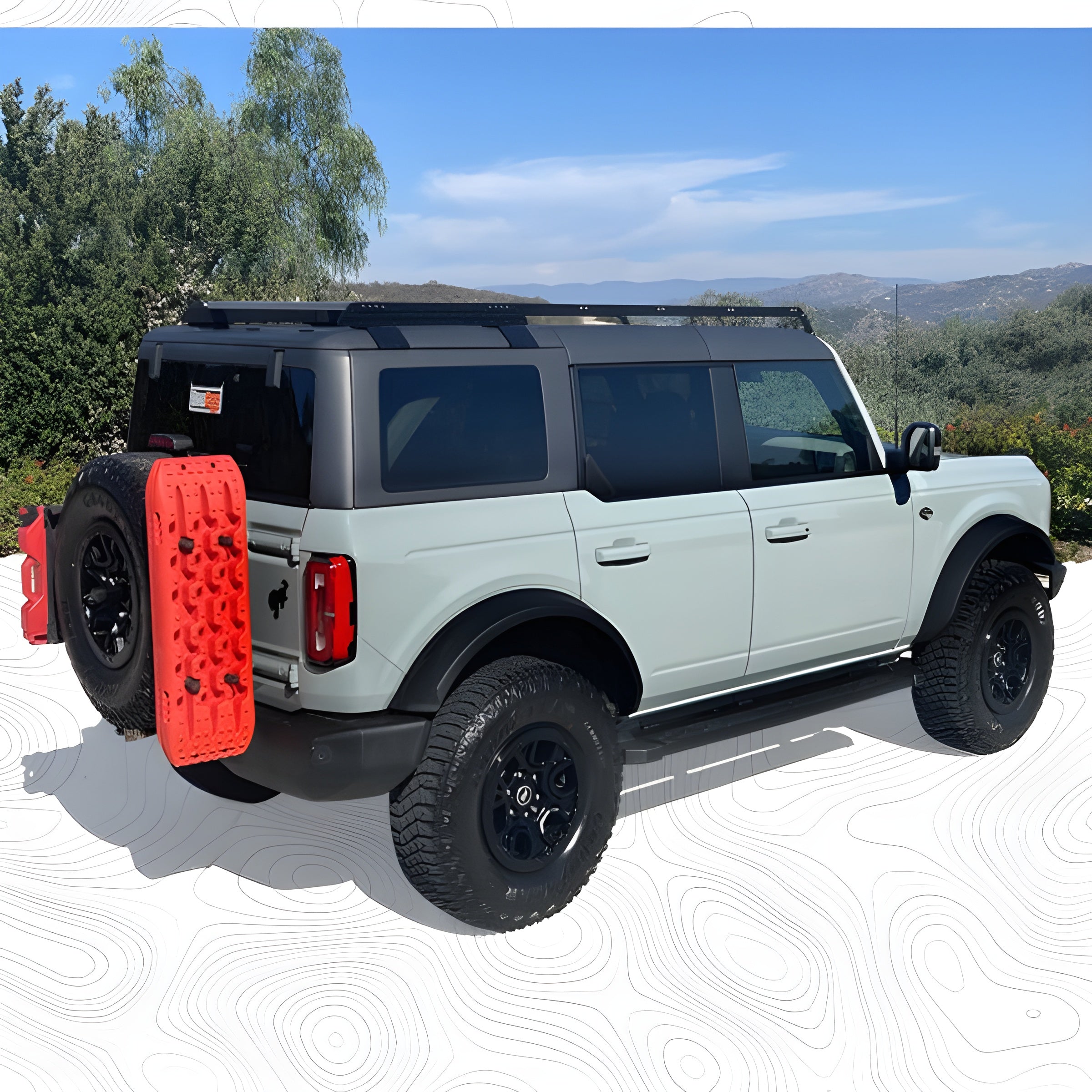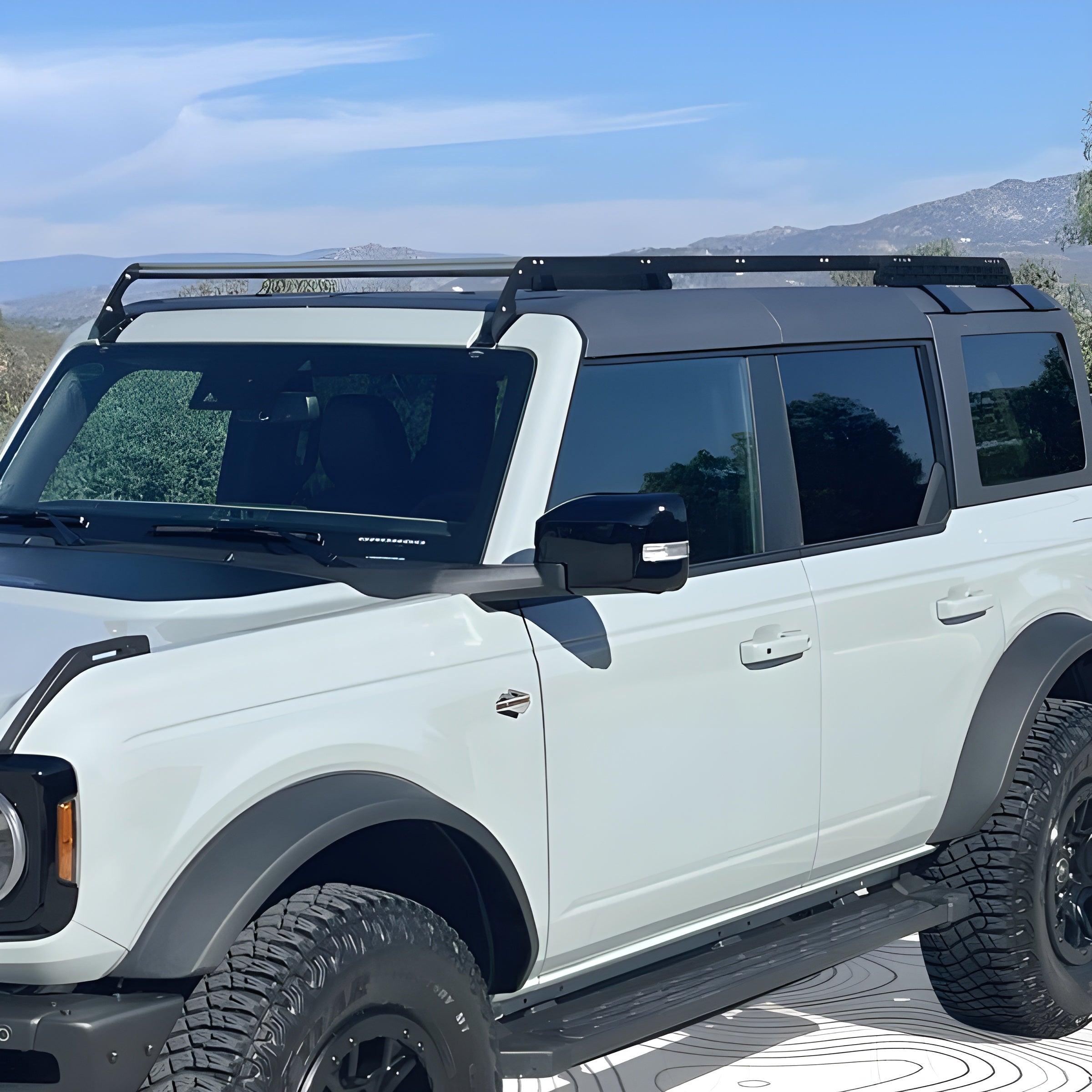 This Badass Tents full-size roof rack kit for the 2021 and newer 4 door Ford Bronco is the first aftermarket roof rack on the market today! Designed with our signature low profile aerodynamic design to fit in your garage and not create extra wind noise or poor gas mileage while on the road.