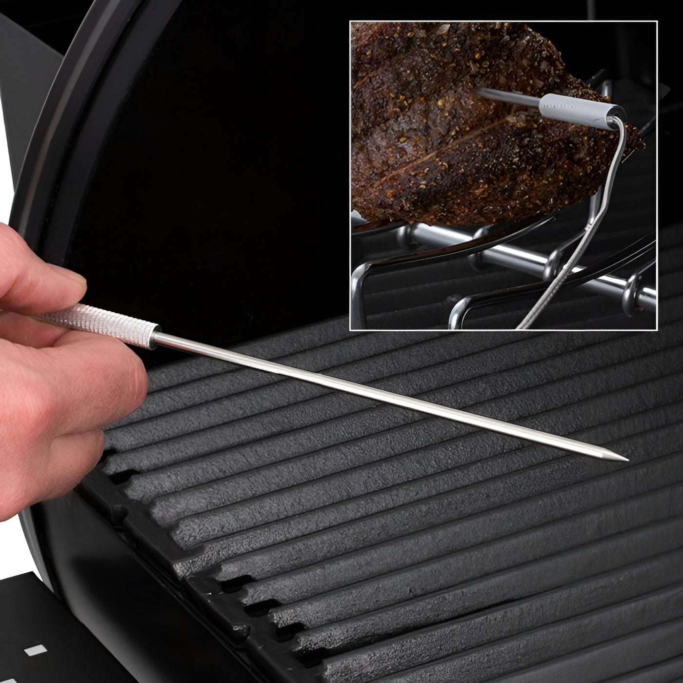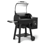 The Regal Pellet 400 pellet grill body is constructed from 2mm (14 gauge) steel, has 500 Sq.in. (3,226 Sq.cm.) of primary cooking surface, 130 Sq.in. (839 Sq.cm.) secondary cooking surface and heavy duty cast iron cooking grids. That’s 225 lbs. of grill right out of the box. The Wifi and Bluetooth® enabled digital controller provides enhanced temperature control to smoke, roast or sear. The controller display panel is the easiest to read while grilling, check the competition. This innovative product comes fully equipped with a powerful auger, 22-lb capacity pellet hopper, removable grease management system, unique ash management system, deluxe rotisserie kit, 2 electronic meat probes, and base storage and side shelf.