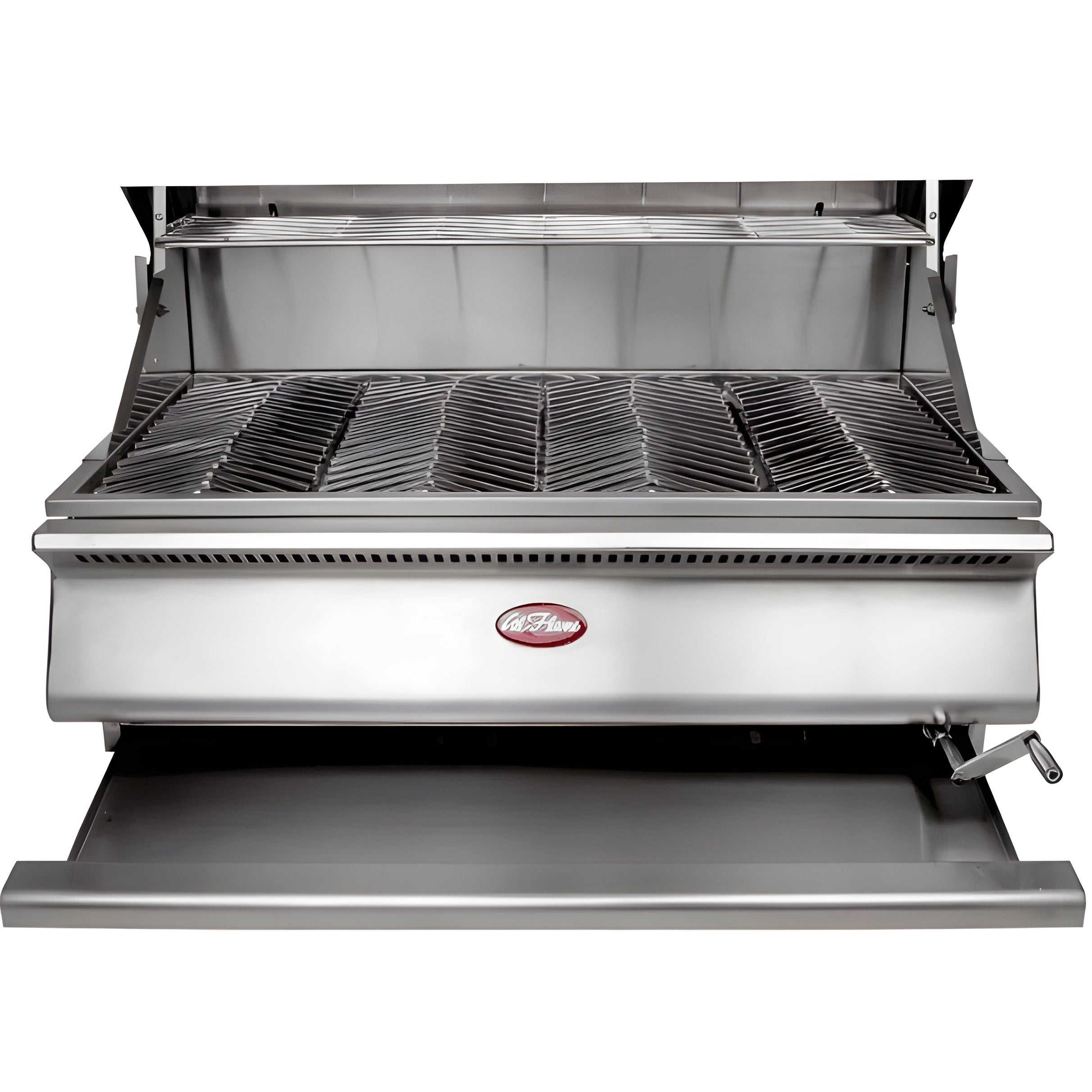 An ergonomically designed handle easily cranks the charcoal tray to your desired height giving you the control you need to adjust the distribution of heat produced from your charcoal briquettes. Including a charcoal grill to your outdoor kitchen is a perfect choice for recipes that require a traditional smoke flavor.
