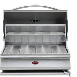 For barbecue purists there is no substitute for a charcoal grill. Charcoal burns at a higher temperature than gas, allowing a skilled grill master to easily sear meat. This 800 sq. in. charcoal grill features sturdy 430-stainless steel construction as well as a temperature gauge and exclusive V-patterned grates.