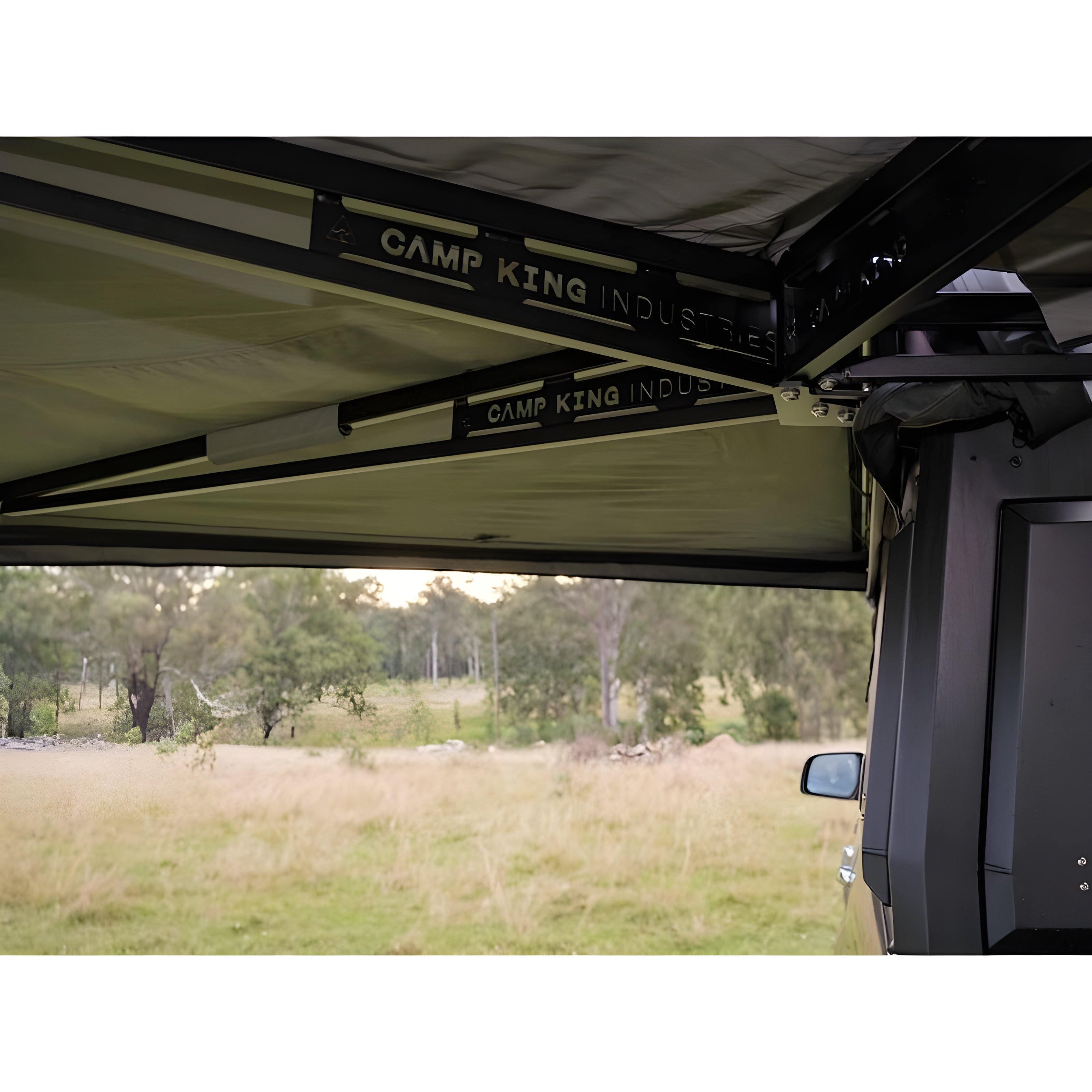 - Incredible Strength - With high-profile extrusions and an incredibly sturdy 6mm bracket the Camp King Awning is going to survive those epic downpours, unexpected gusts of wind, and your nighttime shenanigans!