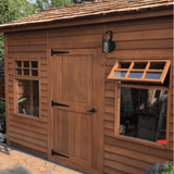 Forget your saw because the Cedarshed Backyard Cabin kit comes completely panelized in a prefab do-it-yourself kit and requires no cutting! Simply attach the panels together with the screws provided and move in. These cedar cabin sheds are available in 3 sizes: 9' x 6', 12' x 8' and 12' x 10' sizes, and include plans.