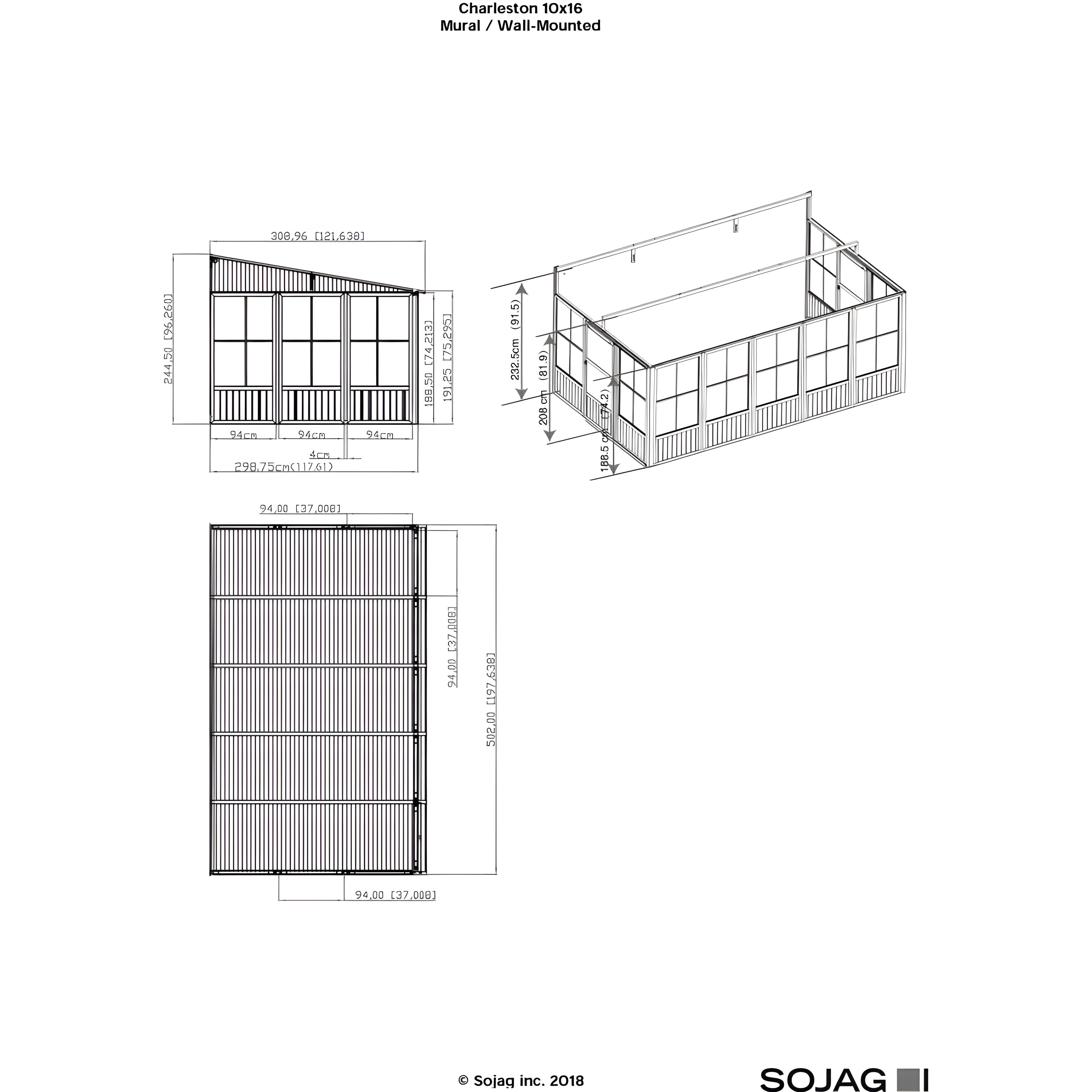Sojag™ Charleston Wall Sol Sunroom Patio Enclosure Kit Dark Gray with Steel Roof