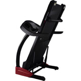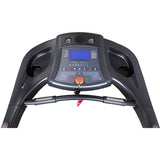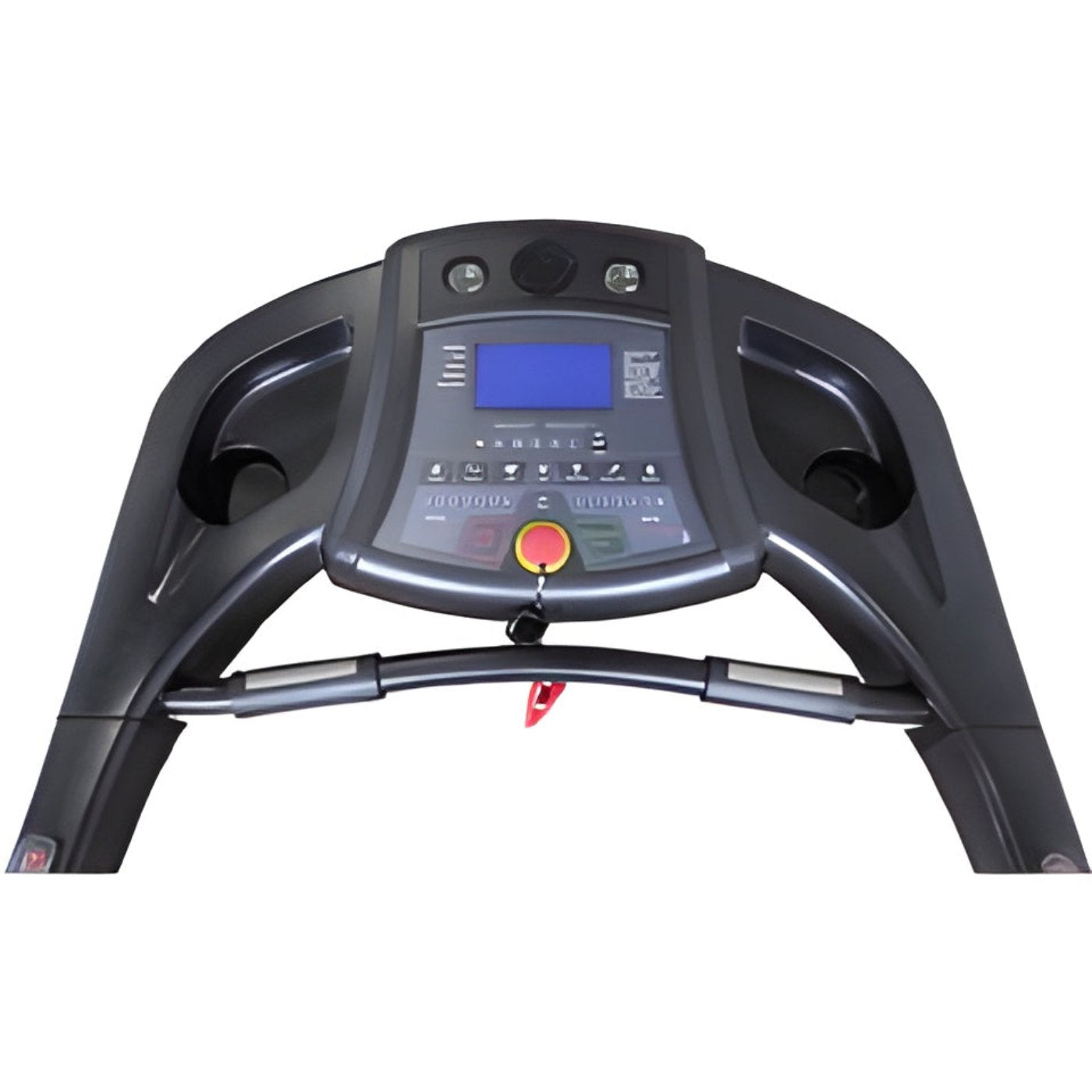 Intuitive LCD with dual speed and incline toggle controls, audio input, speakers, USB port, and cup holders