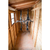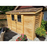 A: The shed is made from high-quality Western Red Cedar, renowned for its natural durability, resistance to rot, decay, and insects, ensuring long-lasting use in outdoor conditions.