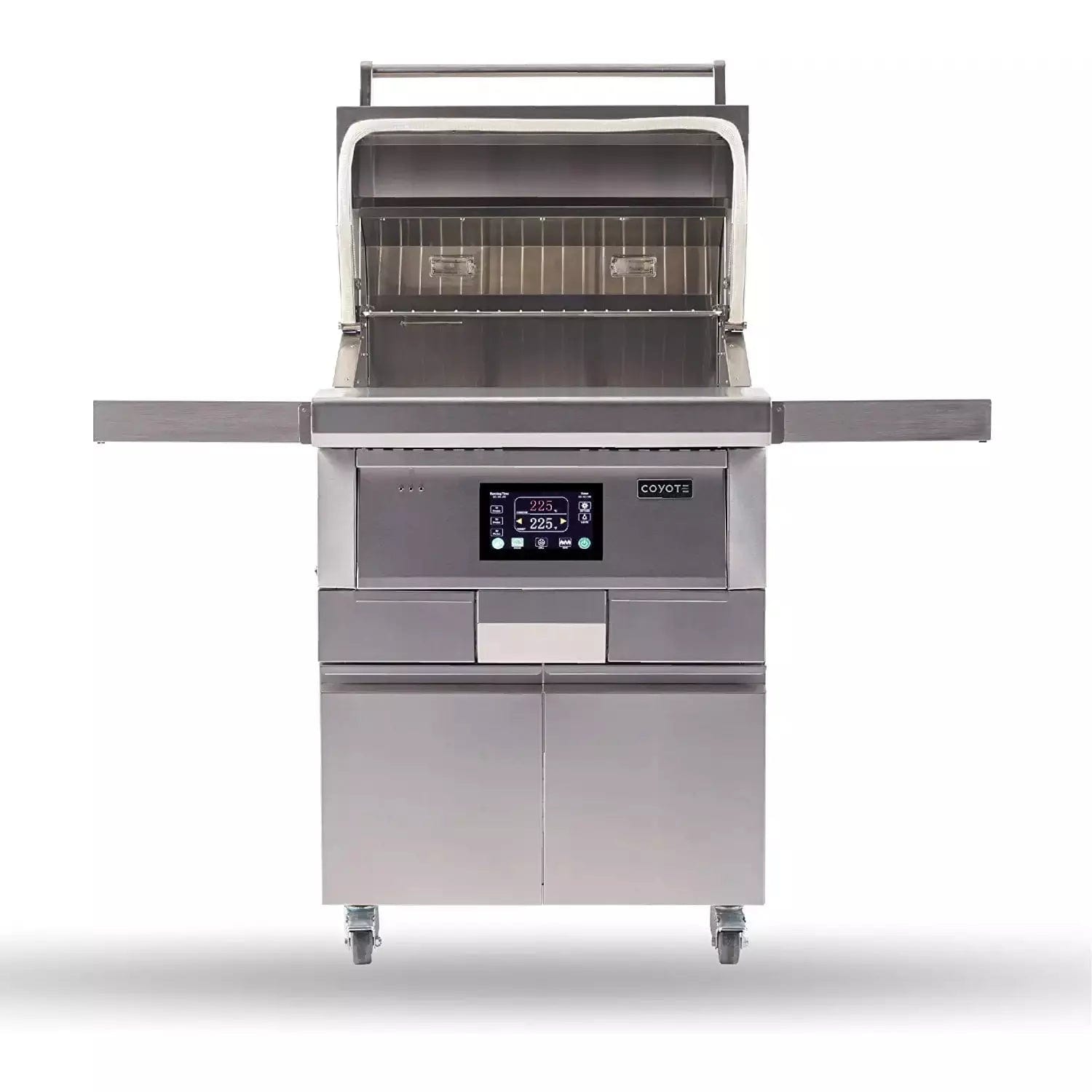The Pellet Grill by Coyote is made from durable and long lasting 304 stainless steel. The grill features digital touch controls, a spring assisted hood, 3-in-1 versa rack and smart drop technology.