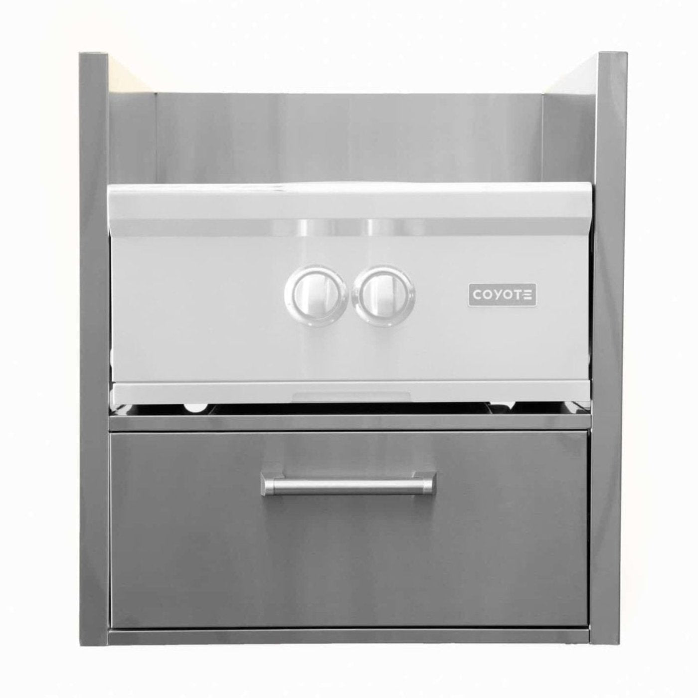 Coyote Asado Power Burner Insulating Jacket w/ Drawer (C1SLV) provides a premium insulating jacket for your Coyote grill. This insulating jacket features stainless steel construction for added durability, while its design allows for safe installation into a combustible grill island.