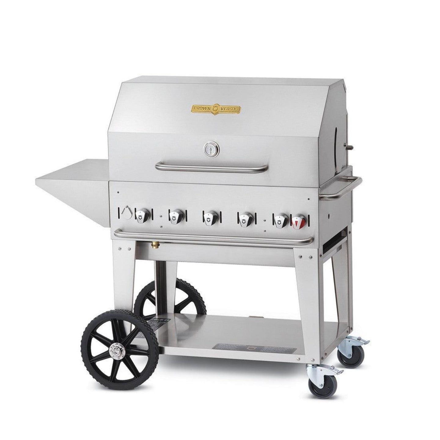 A: The Crown Verity CV-MCB-36PKG is a 36" mobile BBQ grill package that operates on liquid propane. Designed for outdoor use, it is ideal for catering, events, and commercial grilling.