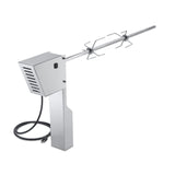 This Crown Verity CV-RT motorized rotisserie for select Crown Verity outdoor grills assembly provides you with everything you need to cook rotisserie-style on your outdoor grill. The included set of 5" forks are ready for pigs, chicken, prime rib, and turkey, and can accommodate up to 140 lb. To use this rotisserie assembly, your Crown Verity outdoor grill must have a roll dome installed (sold separately). This unit includes a 120V connection to operate the motorized rotisserie