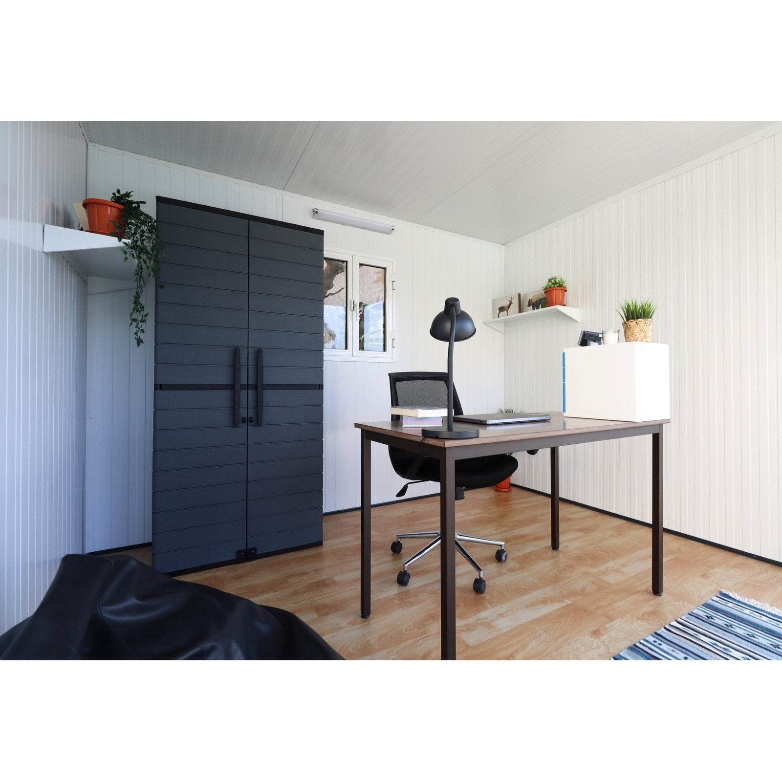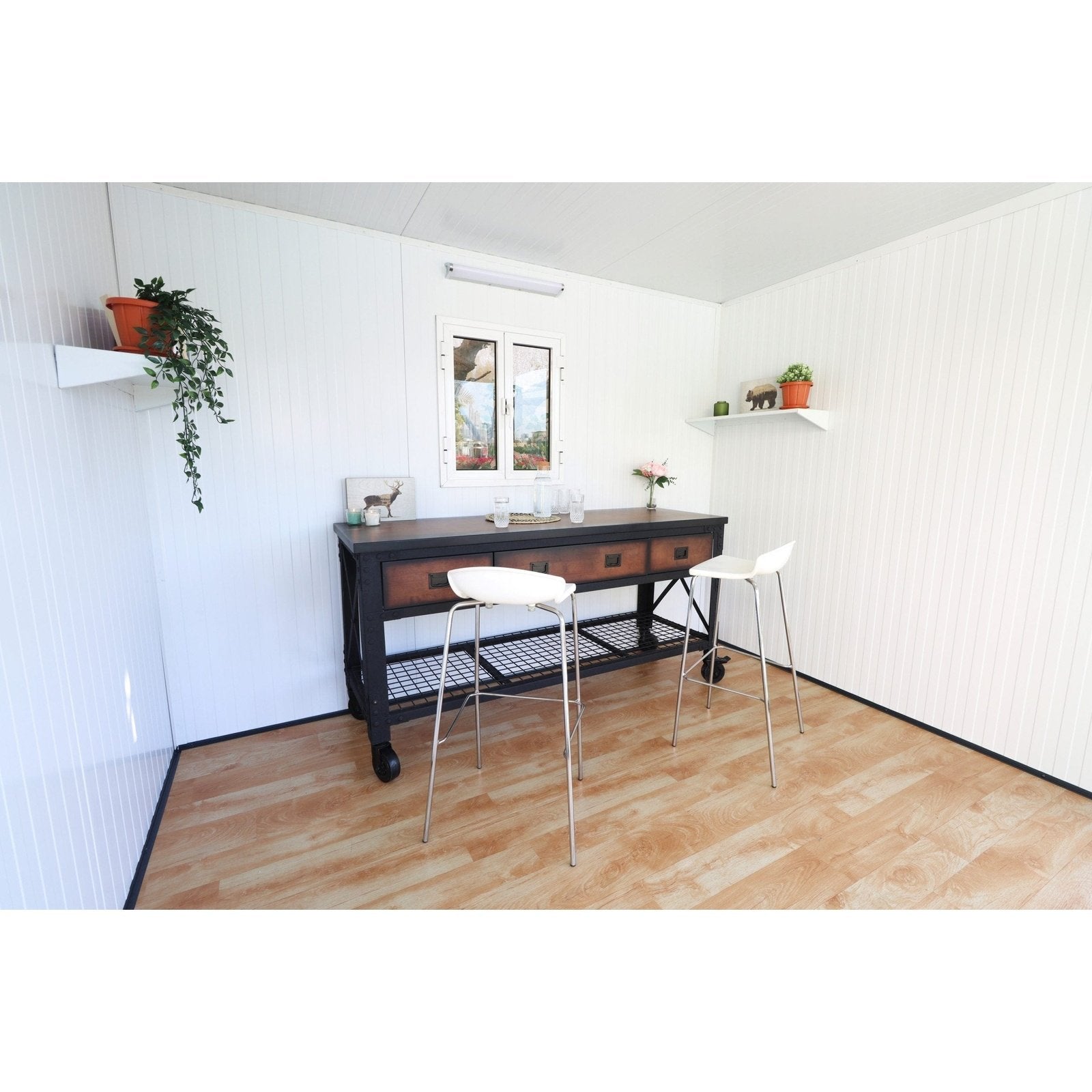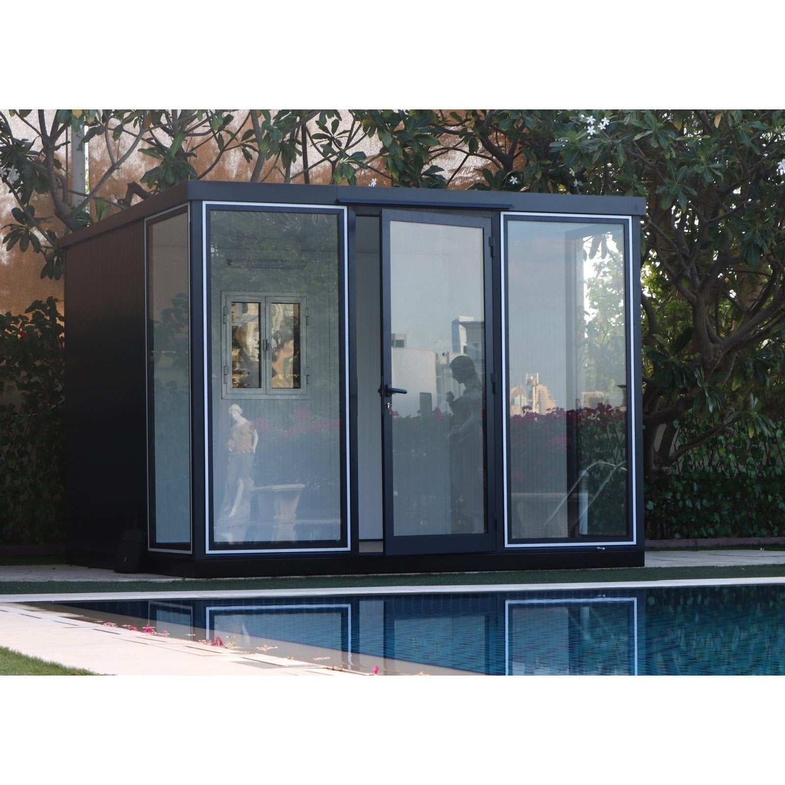 As an office or playroom: it provides a comfortable and stylish space for work or play, away from the distractions and noise of the main house. It is insulated with PU foam sandwiched in between sturdy steel panels, optionally you can add heating and cooled for year-round comfort, making it a great extension of your home.
