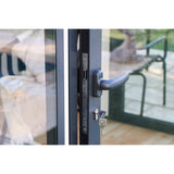 A: This garden room features a durable frame with insulated glass panels, providing excellent thermal protection and energy efficiency. The materials are designed to withstand the elements while maintaining a comfortable environment inside.