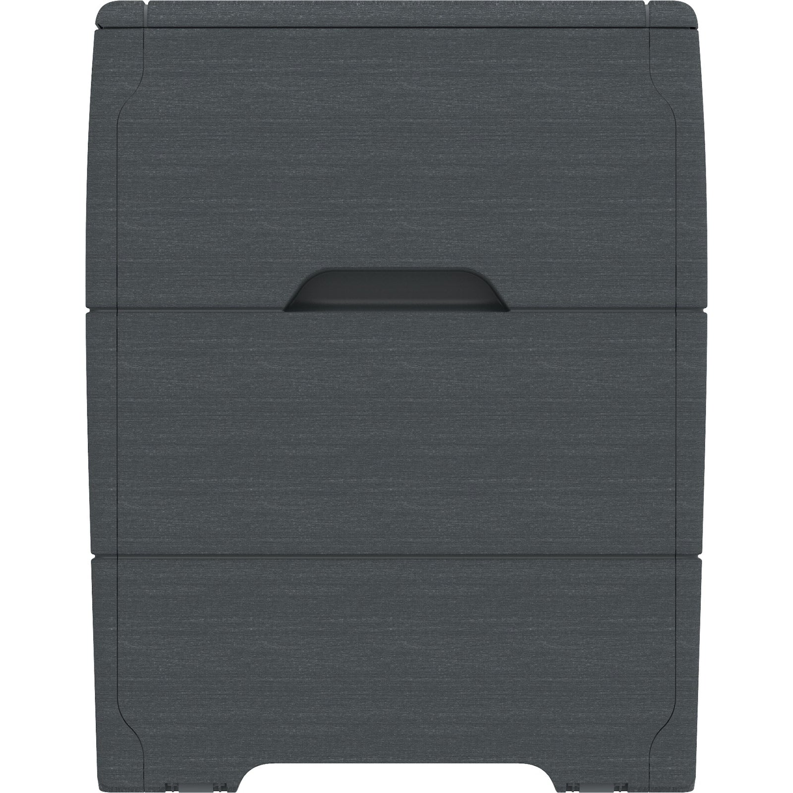 Plenty of storage and comfortable seating, all in one impeccably styled patio deck box. The Duramax Deck Box offers a generous 71 gallon storage capacity and can even be considered a bench, all while making an excellent accent piece for your outdoor décor and patio furniture with its elegant natural wood-paneled look. Made out of a durable polypropylene resin, this outdoor storage box is fully weather-resistant, easy to maintain and keeps contents dry and ventilated. You will be thrilled with the versatility of this multi-purpose piece. It is ideal for pool storage, deck storage or garden storage, and when your guests arrive you will have no shortage of patio seating options