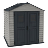 The DuraMax 7' x 7' StoreMax Plus vinyl shed with molded floor is an aesthetically attractive shed that features a durable and superior fire-retardant vinyl resin exterior. Its interior beams and columns are made of heavy-duty galvanized structural steel. The StoreMax Plus adds beauty to any backyard or outdoor garden area. The StoreMax Plus 7x7 shed provides strength and safety at a very affordable price and comes with a 15-year warranty which is the longest in the industry!