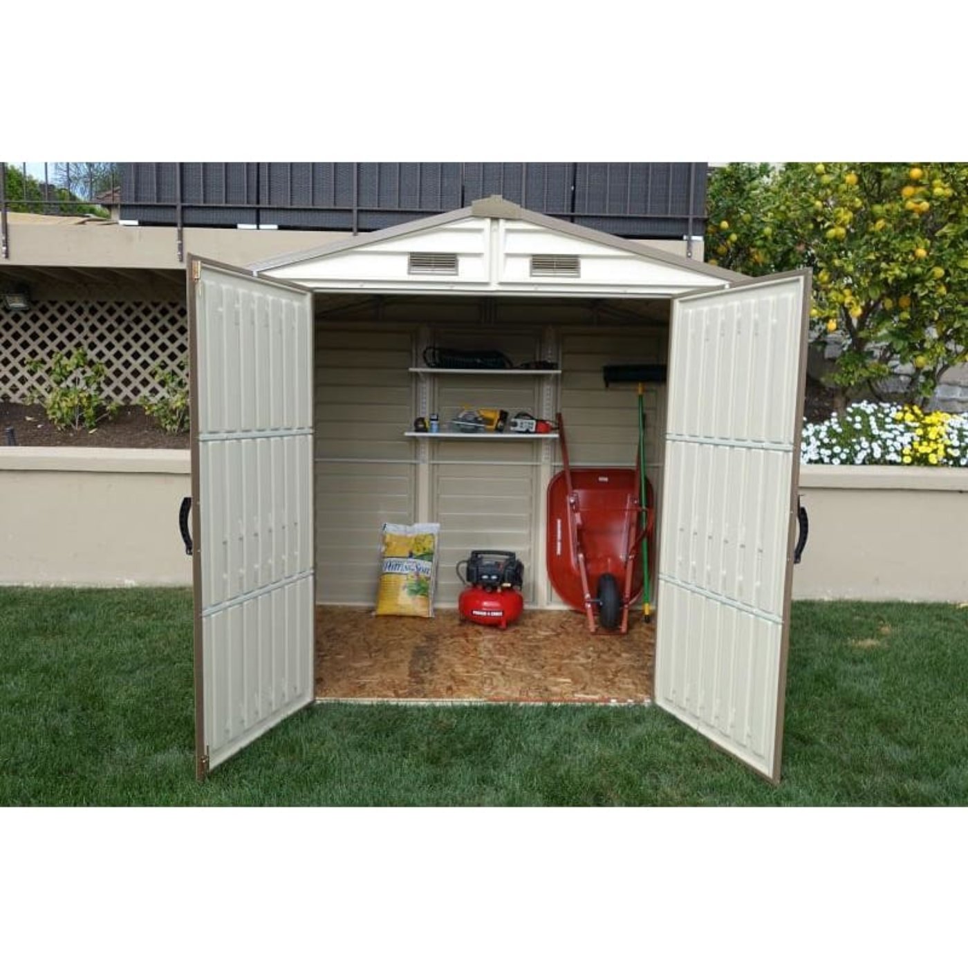 Q: What is the Duramax 8' x 6' StoreAll Vinyl Shed with Foundation 30115?
