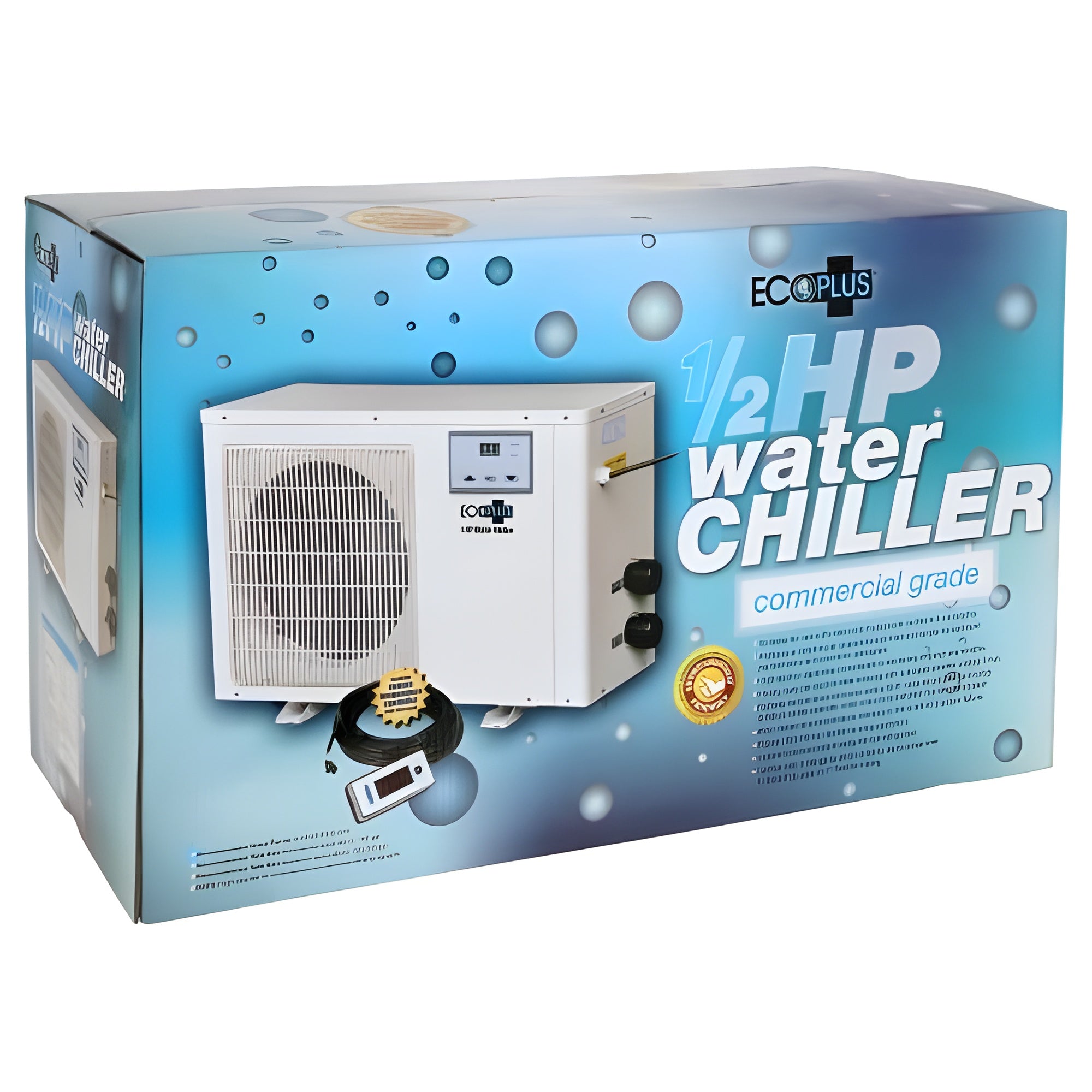 Suitable for use with reservoirs, hydroponic systems and aquariums. Features a commercial-grade titanium heat exchanger for optimum performance and corrosion resistance. High-quality Japanese compressor is extremely efficient and reliable. Heavy-duty galvanized steel housing with a durable powder-coated finish. Digital LCD display allows for easy operation. Remote temperature controller with a 30 ft cord allows user to monitor and adjust chiller settings when the unit is installed in a remote location. Auto restart and temperature memory in the event of a power failure. Uses environmentally friendly R410A refrigerant. Comes with 2 fittings to allow chiller to be plumbed with 1 in hard PVC pipe or 1 in flexible tubing.