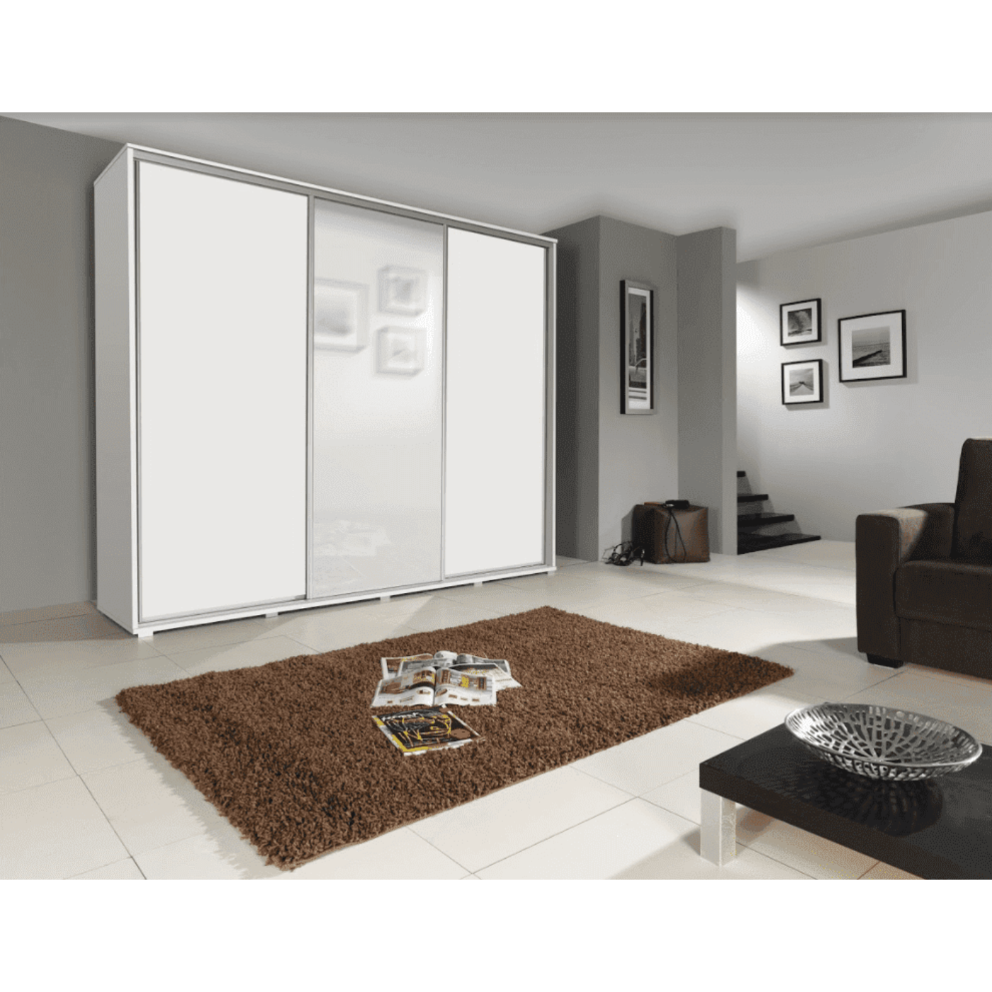 This freestanding wardrobe has sliding doors that keep your clothing and accessories hidden from view. Its compact shelves and a hanging rod allow you to neatly fold or hang items to keep things organized. With everything you need in one space, this modern wardrobe is perfect for any smaller bedroom.