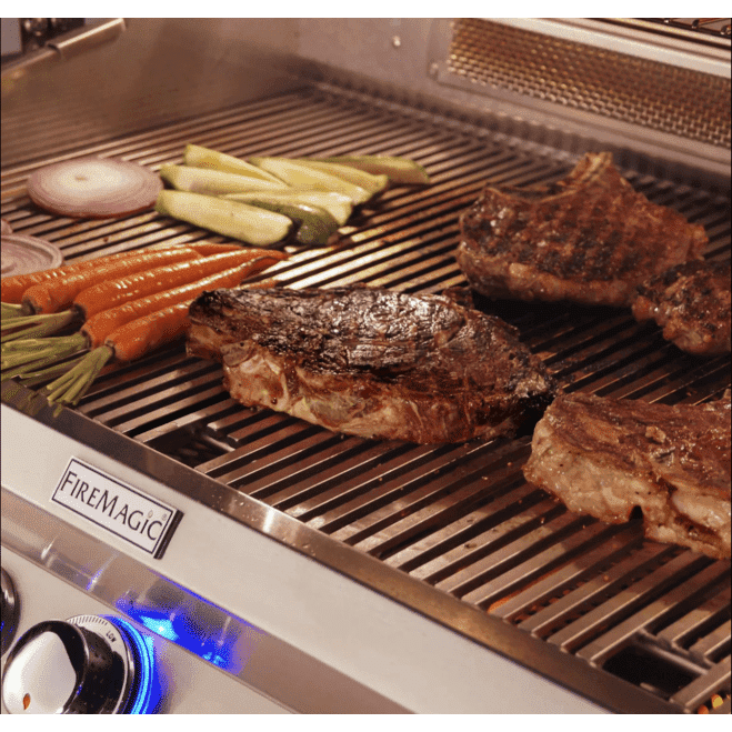 A disposable drip tray system makes cleanup a breeze and reduces the chance of grease flareups. Solid, raised hangers line the sides and back of the grill for a seamless look when placed into a countertop or island. A 120 VAC power source is required for ignition, as well as for the lighting functions. With many of the same premium features as the Echelon series of grills, the Aurora series from Fire Magic is the perfect centerpiece for your luxury outdoor kitchen.