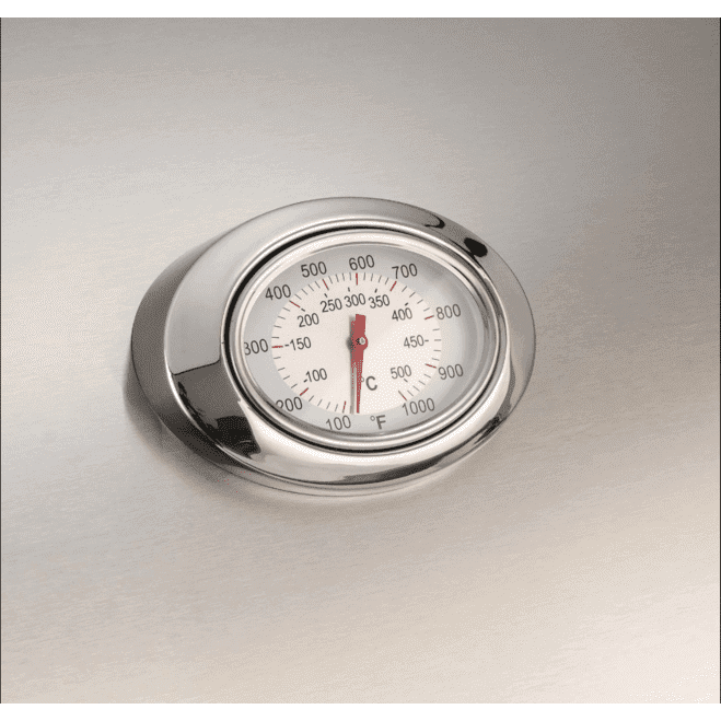 The double-walled, spring-assisted hood opens 90 degrees for easier access and more efficient exhaust. It features an integrated analog thermometer with an angled bezel for easier viewing. Inside, this grill features three cast stainless steel E-burners, made with 1/4-inch thick walls and precision porting, that combine for 75,000 BTUs. Reliable hot surface ignition always lights your burners where others might fail.