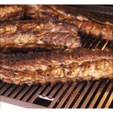 Flash tubes serve as a backup. Flavor grids sit above the burners to spread heat evenly and protect the burners from debris and grease. These flavor grids have attached heat zone separators, allowing you to create independent heat zones at the surface of the grill for varied cooking options. The cooking surface consists of the patented Diamond Sear cooking grids. These grids feature a matte, non-stick surface, and a trapezoidal shape that efficiently transfers heat from the burner to the wide surface of the cooking grids. The warming rack above can be adjusted and moved out of the way when not in use. For nighttime grilling, the interior of the grill is lit by two halogen lights.