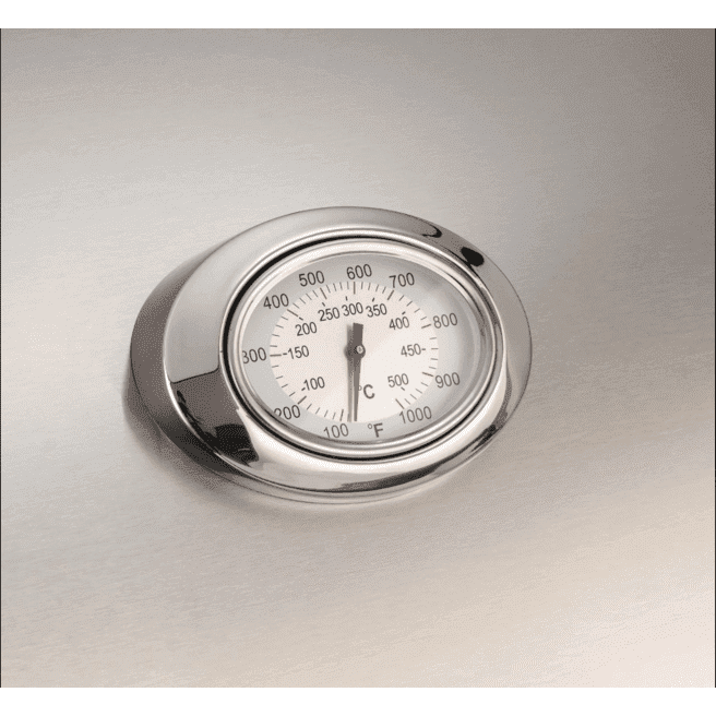The double-walled, spring-assisted hood opens 90 degrees for easier access and more efficient exhaust. It features an integrated analog thermometer with an angled bezel for easier viewing. Inside, this grill features three cast stainless steel E-burners, made with 1/4-inch thick walls and precision porting, that combine for 90,000 BTUs. Reliable hot surface ignition always lights your burners where others might fail.