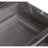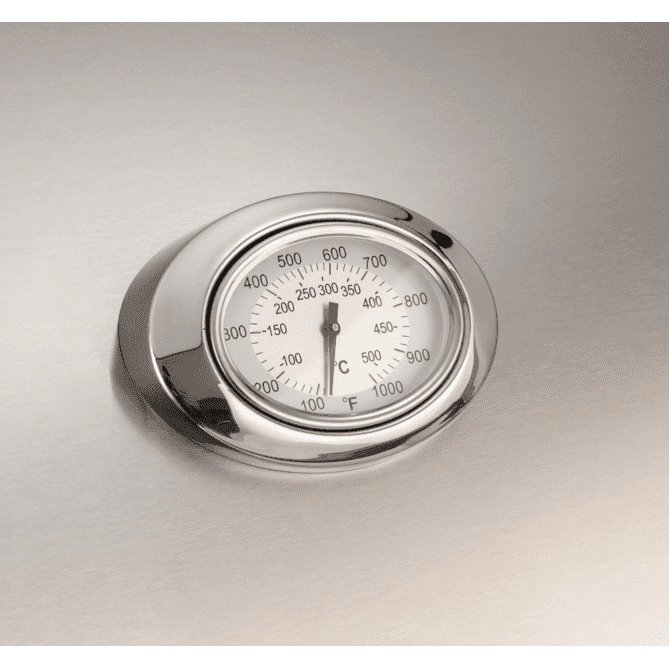 Two separate double-walled hoods feature spring-assist hardware for ease and accessibility. They open 90 degrees for easier access and more efficient exhaust. Analog thermometers are integrated into both hoods, with angled bezels for easier viewing. The charcoal side features an adjustable height charcoal tray, letting you control the amount of heat that reaches the cooking surface. A 26,000 BTU burner below the charcoal tray is used to quickly ignite your charcoal or wood chunks. Both the gas and charcoal sides feature patented Diamond Sear cooking grids, which are designed with a trapezoidal shape to optimally transfer heat from the fire to your food.