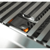 An adjustable warming rack also sits above the cooking surface on either side, for a little extra space to keep food hot while waiting for the rest to cook. Generating heat on the gas side are two cast stainless steel E-burners, with 1/4-inch thick walls and precision porting that combine for 50,000 BTUs. Reliable hot surface ignition always lights your burners where others might fail.