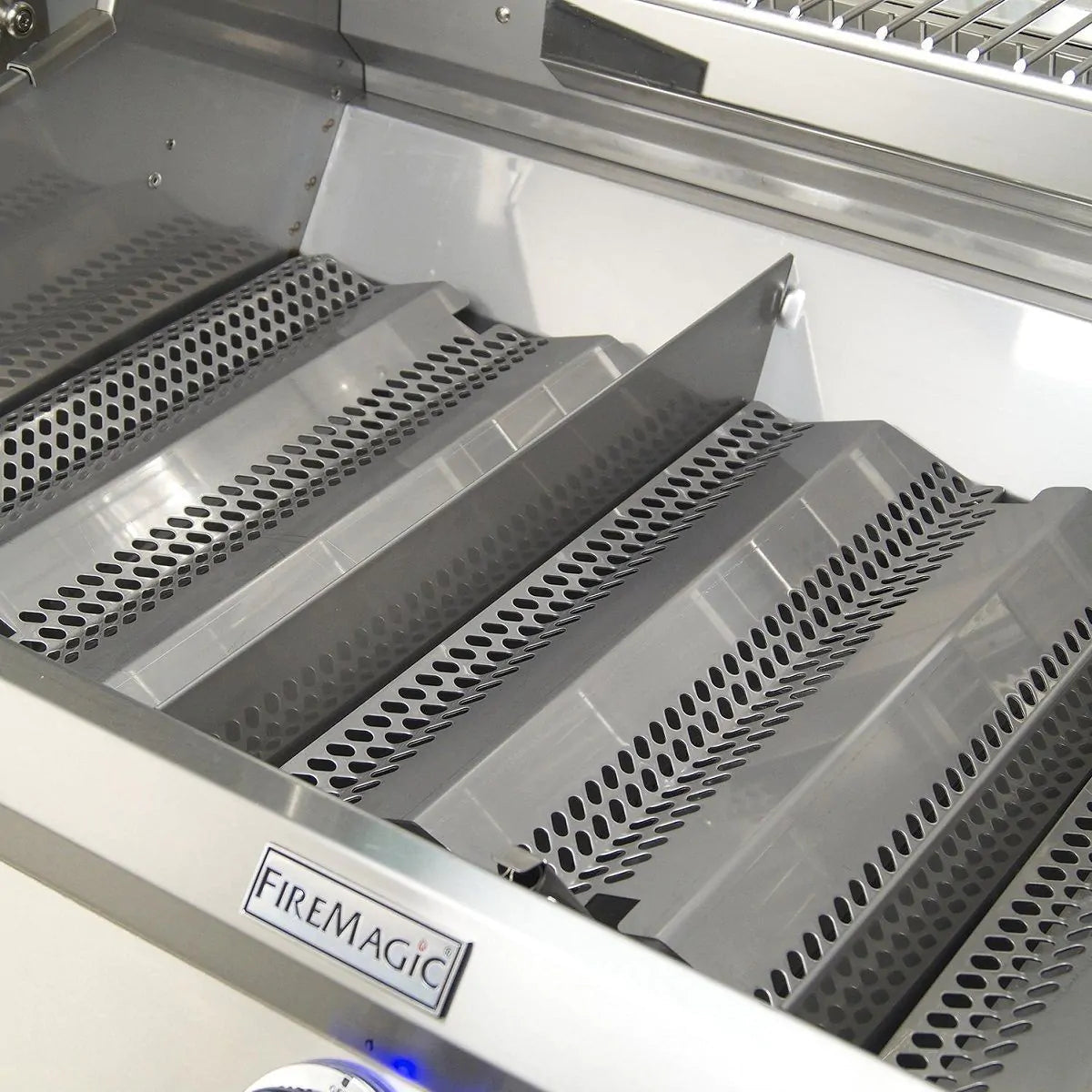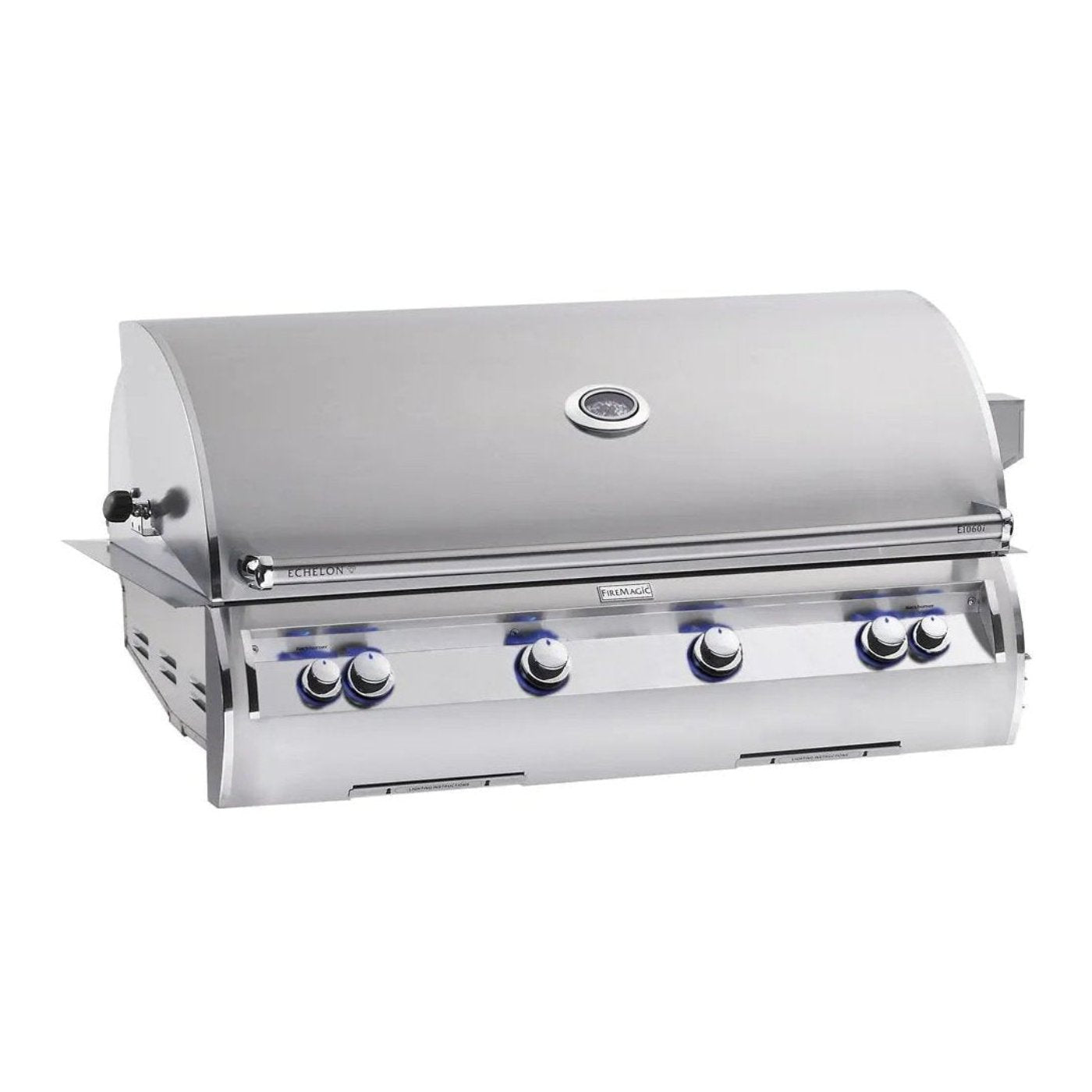 The Fire Magic Echelon Diamond Series combines the ultimate in performance, beauty, and innovation, featuring a hot surface ignition, blue back-lit knobs, heat zone separators, and infrared sear burner options.