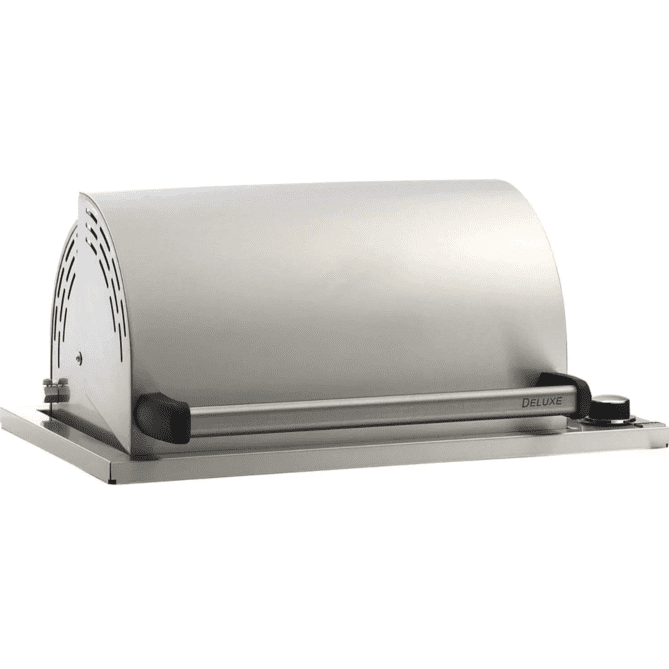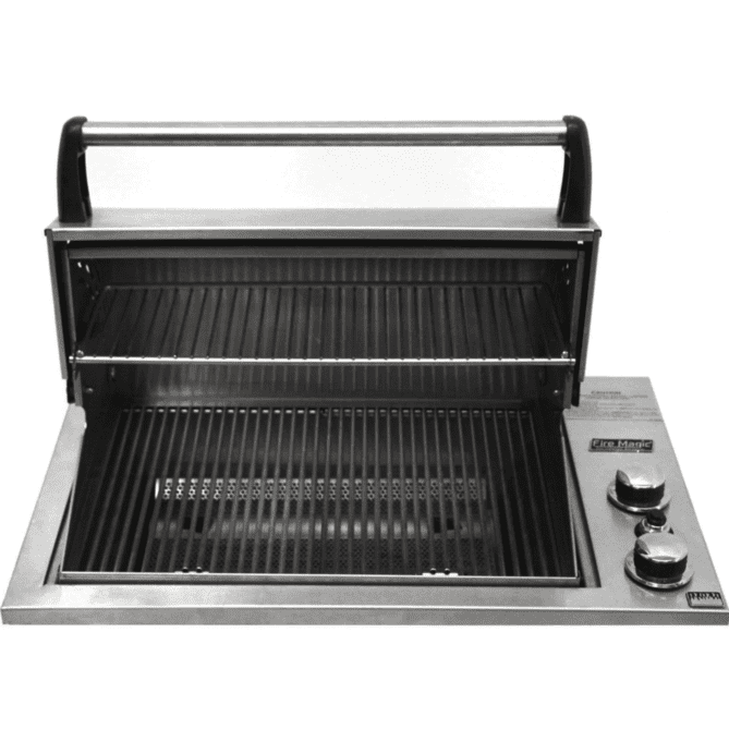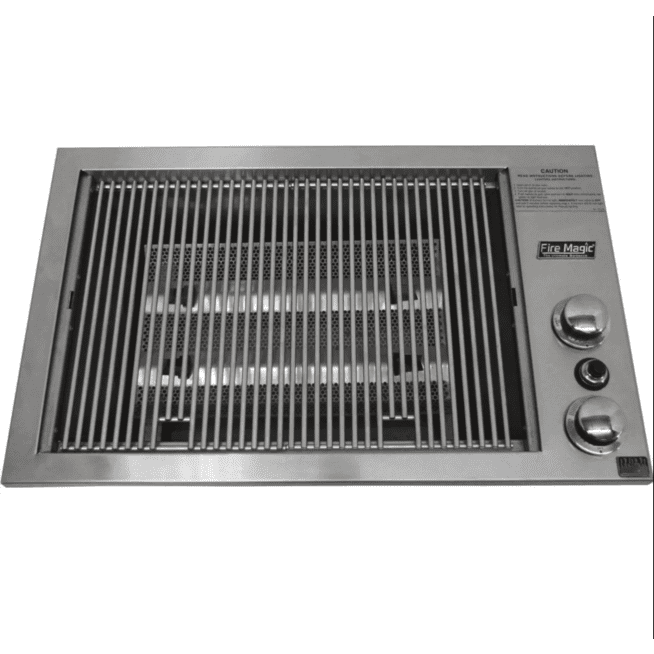 The Fire Magic Legacy Deluxe Gourmet Countertop Gas Grill features 368 square inches of grilling area. It features two cast stainless steel burners, which provide 42,000 BTUs of cooking performance, a pushes button solid-state electronic ignition system, heavy-duty warming rack, and a double-wall stainless hood. The built-in drip chute makes clean-up a breeze.