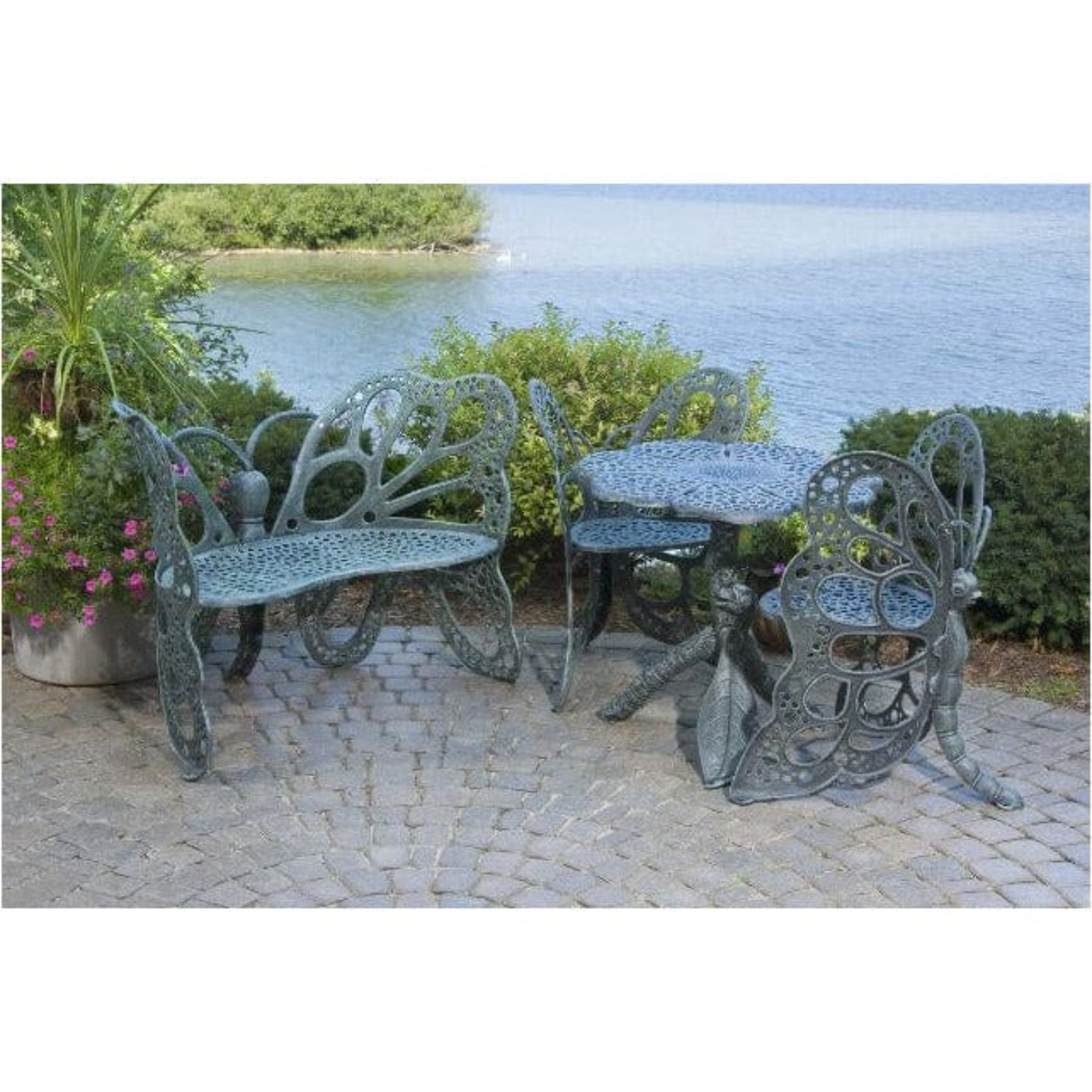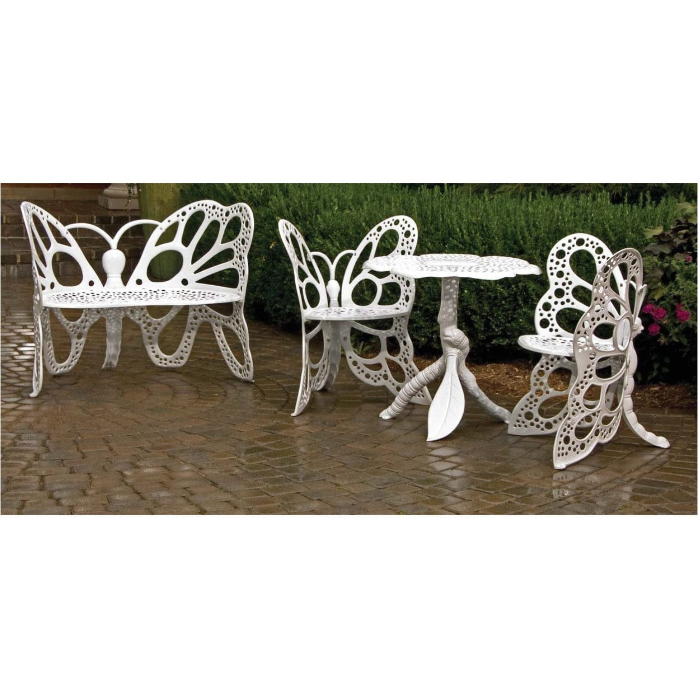 Classic wrought iron design in lighter, rust-free cast aluminum. Durable, all weather, powder coated finish. Easily assembles to full adult size, comfortable attractive art.