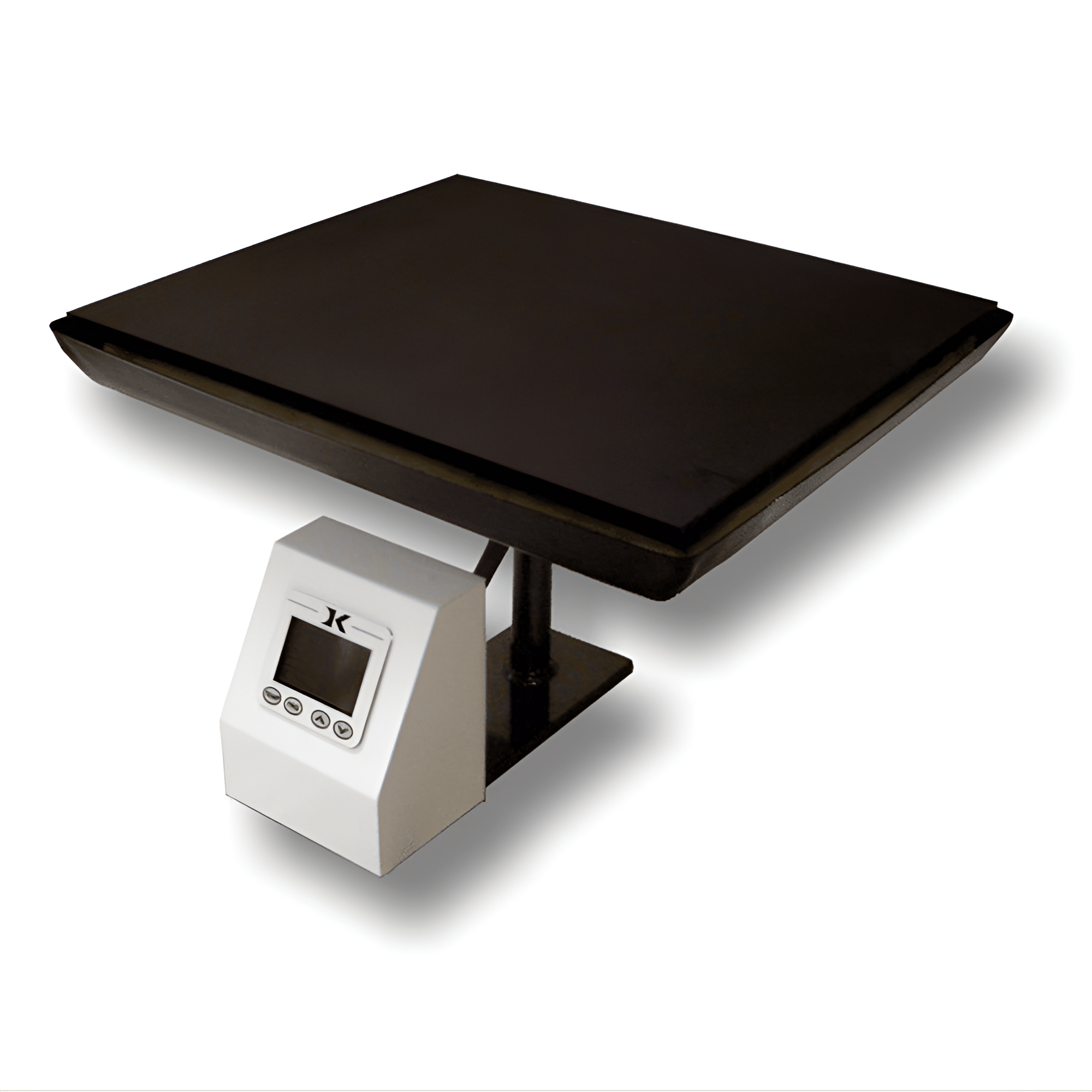 The Geo Knight 14" x 16" Bottom Heat Fixture is a separately controlled heat pedestal that slides into the position where the standard table is located. It is ideal for thick embossed appliques, certain lettering transfers, and other heat transfer and fusing applications requiring top and/or bottom heat.