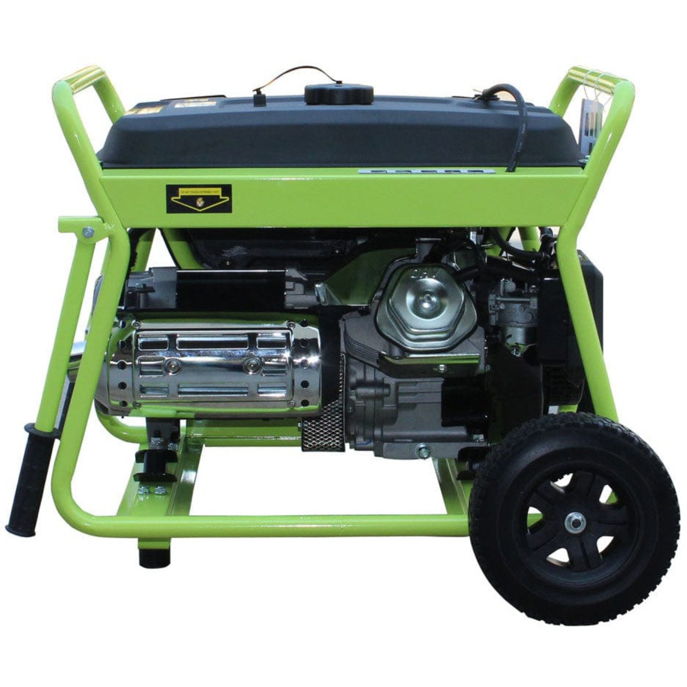 This gas generator's rugged heavy-duty steel frame features a durable construction with an integral mobility kit with 10 in. solid wheels and fold up or down handles that make it easy to transport with ease and maneuver over all sorts of terrains. This portable gas generator is ideal for use as a backup power source, reliable for emergencies, construction and/or jobsite tasks, camping excursions, tailgating, around the home as well as any outdoor event.