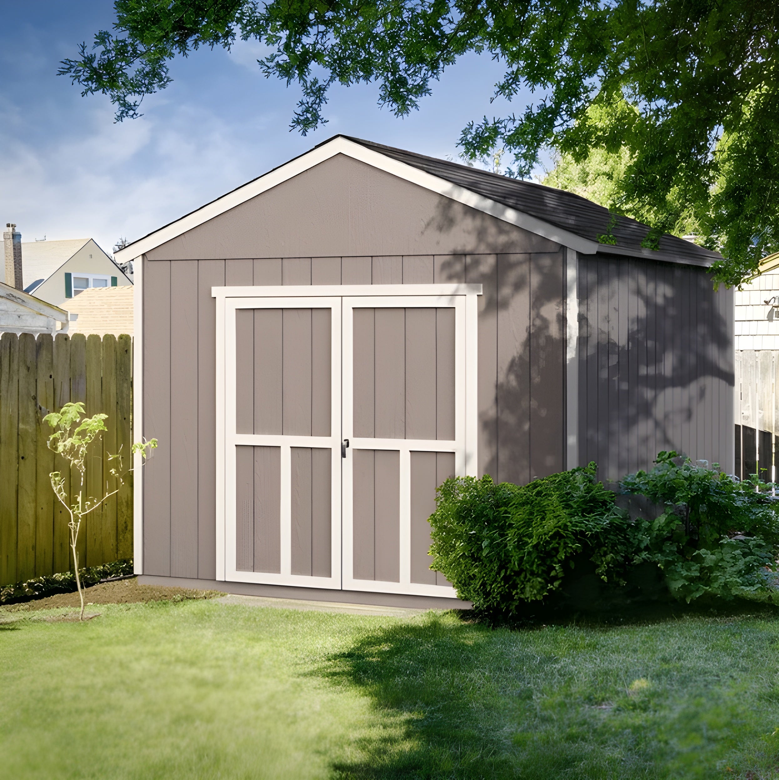 The Rookwood 10x14 shed showcases a modern design with exceptional versatility. The multi-functional interior features robust 2x4 wood construction, and 140 square feet of space to personalize any way you want. Handy Home gives you the option to place the doors on the eave, or gable side along with four-door trim designs to help you achieve your desired look. 7" tall sidewalls give you plenty of headroom, and convenient storage of rakes, shovels ladders, garden tools, and more. This 10x14 shed kit includes extra-wide 5"-4" doors while other shed brands charge extra. That means you can finally get ATVs, tractors, tools, and equipment in, and out easily. The strong, yet beautiful woodshed siding is pre-primed and treated to resist decay, and insects to eliminate unnecessary maintenance. Handy Home DIY shed kits are designed to be a fun and rewarding DIY project for even novice builders. Our sheds feature pre-cut wooden components so you will never have to waste time measuring and cutting. Even the doors are pre-assembled and pre-hung to simplify the shed build process. With all the money, and time, you save, you can transform this 10x14 woodshed into a state-of-the-art sanctuary, workshop, or art studio. As you can imagine, we have a shed to build it.