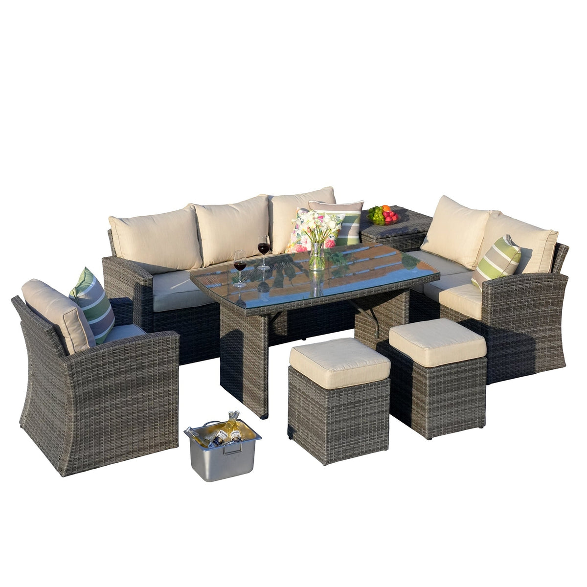 - Elegant Design: Features variegated grey wicker and beige cushions for a sophisticated, neutral aesthetic that complements any outdoor décor.