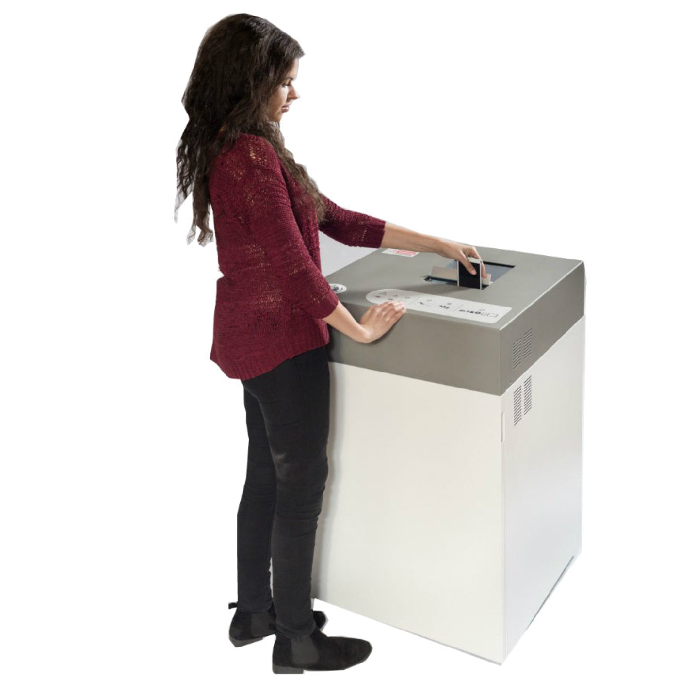 This unique product has standard power requirements, unlike most industrial shredding and data destruction products which require high voltage wiring, as well as a dedicated operating area due to noise and dust. The intimus FlashEx is a "plug and play" product that can be used in a standard office environment.