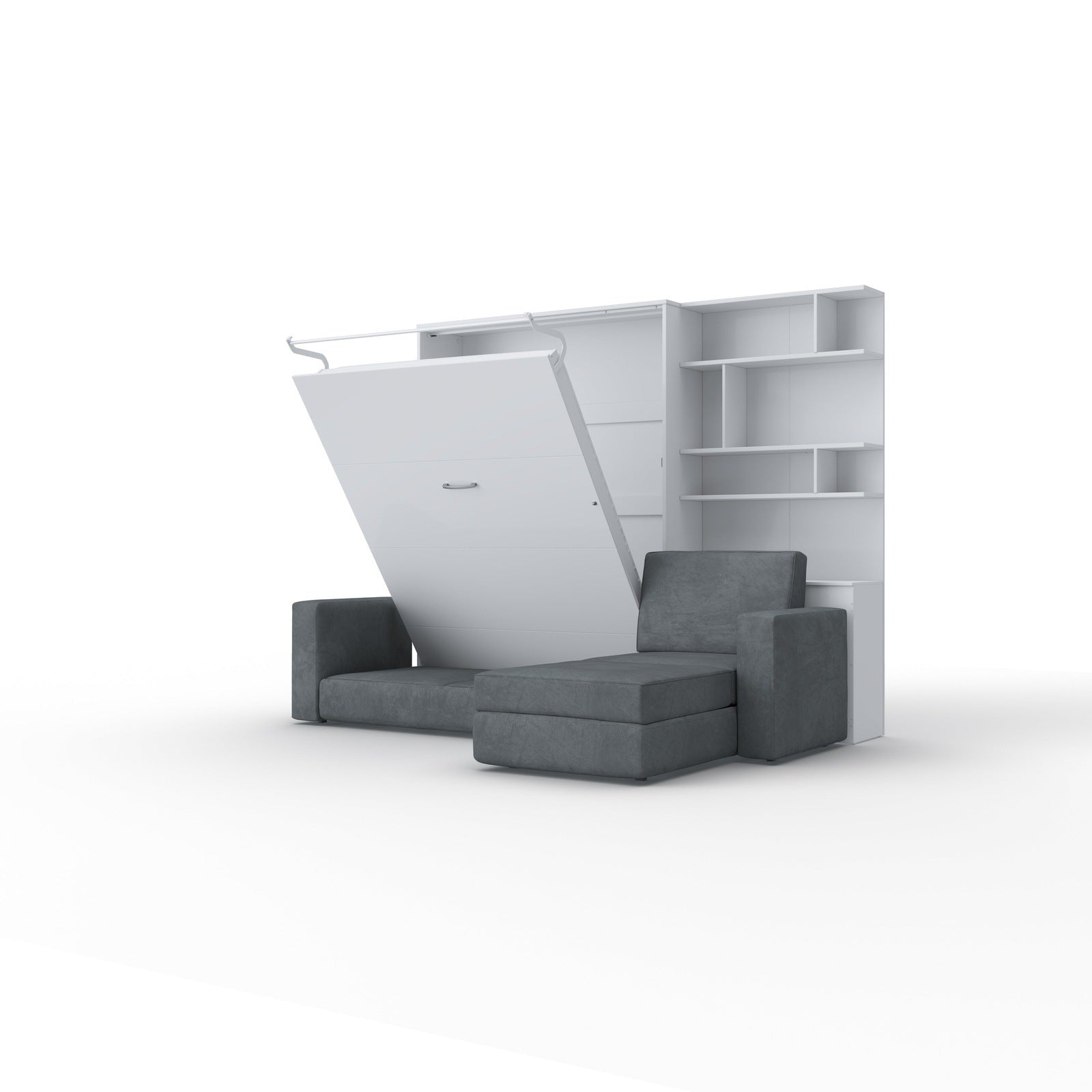 A smart and reliable design of the Invento Wall Bed with a corner sofa and a bookcase provides freedom to create a unique space in your living area.