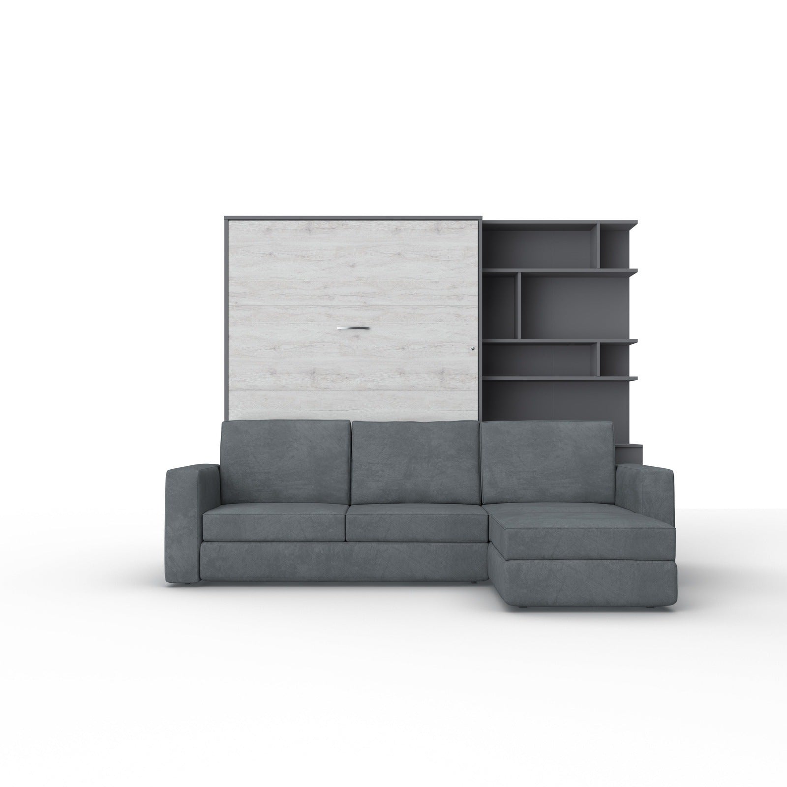 A smart and reliable design of the Invento Wall Bed with a corner sofa and a bookcase provide freedom to create a unique space of your living area.