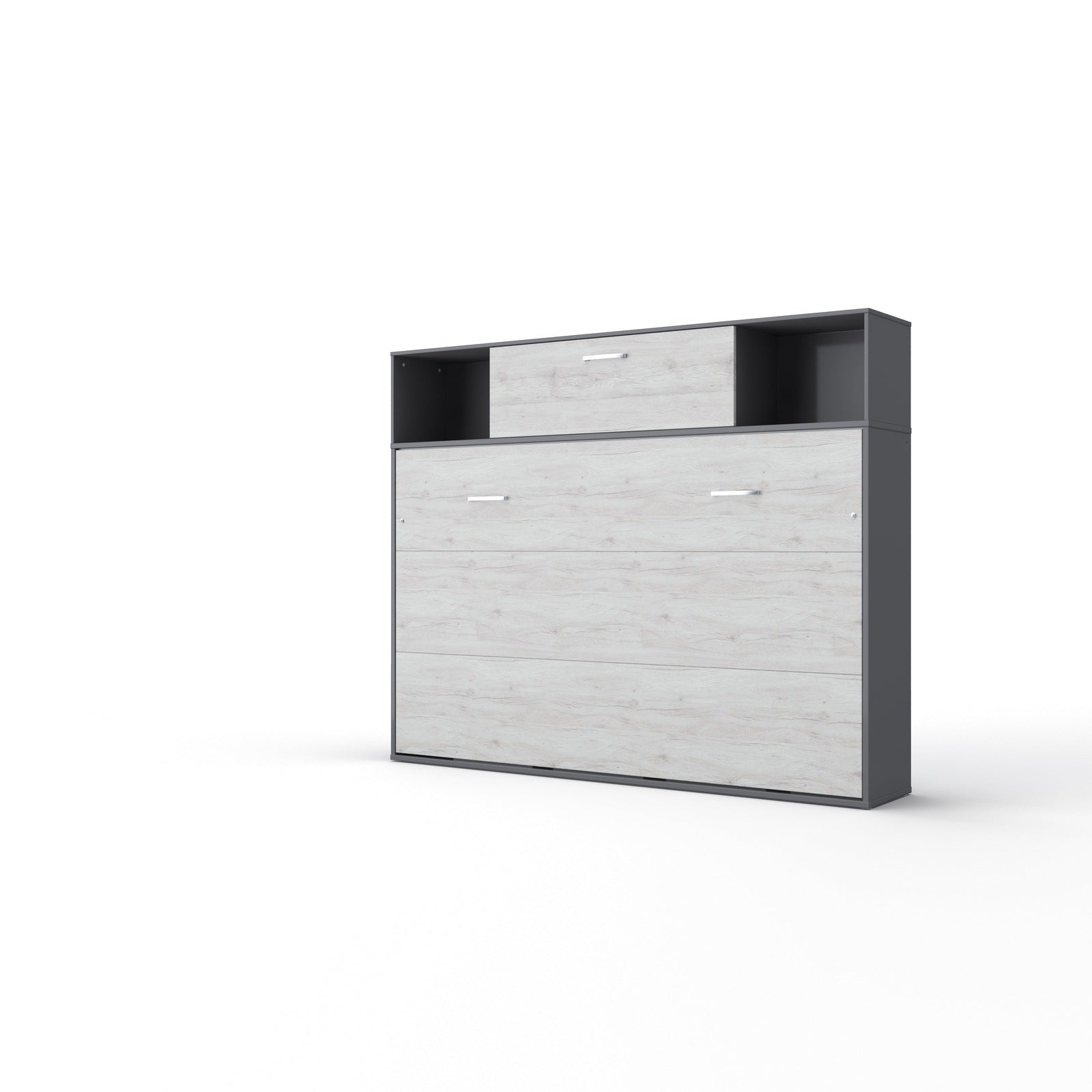 Maxima House Invento Horizontal Wall Bed, European Twin Size with a cabinet on top - IN90H-13W