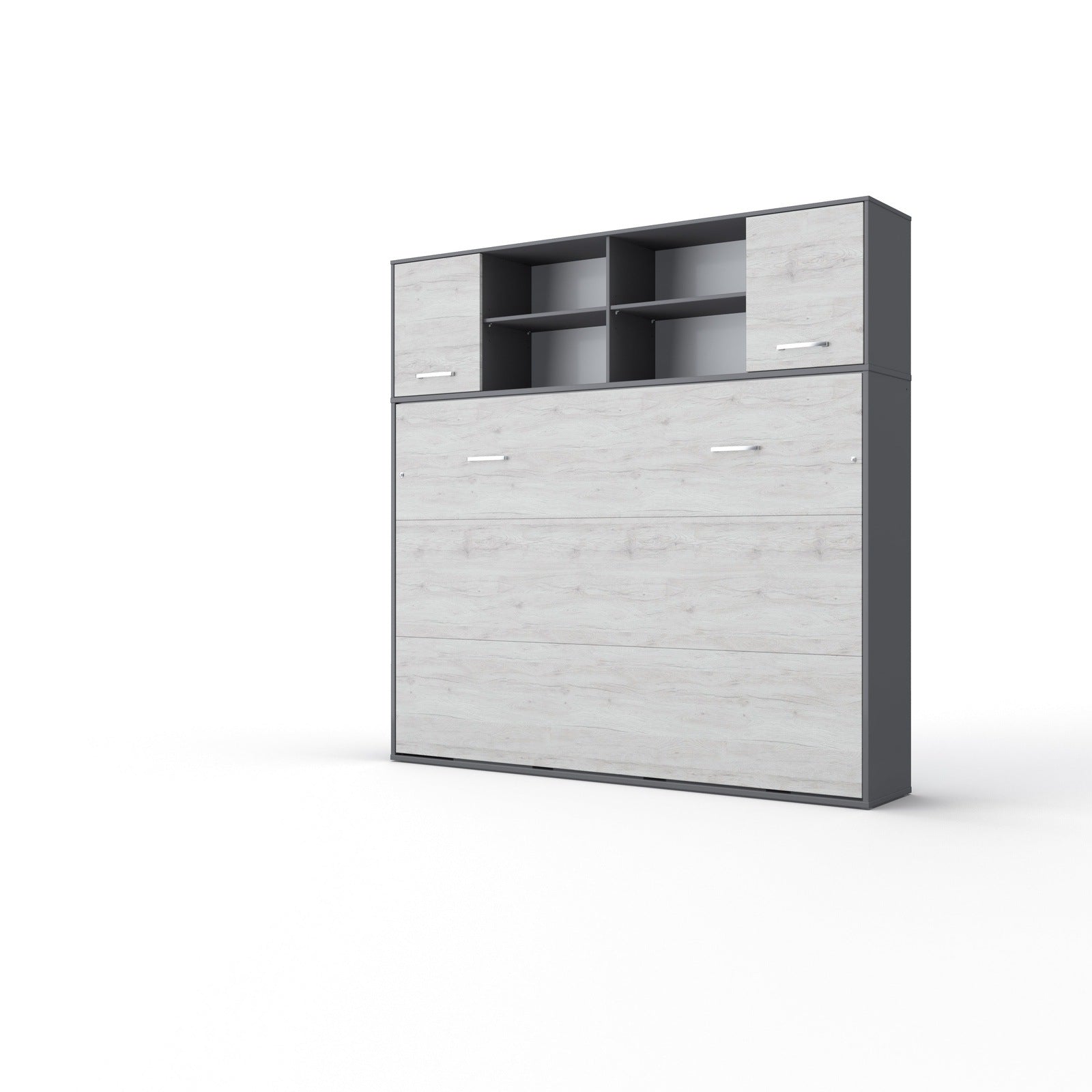 Maxima House Invento Horizontal Wall Bed, European Twin Size with a cabinet on top - IN90H-12W